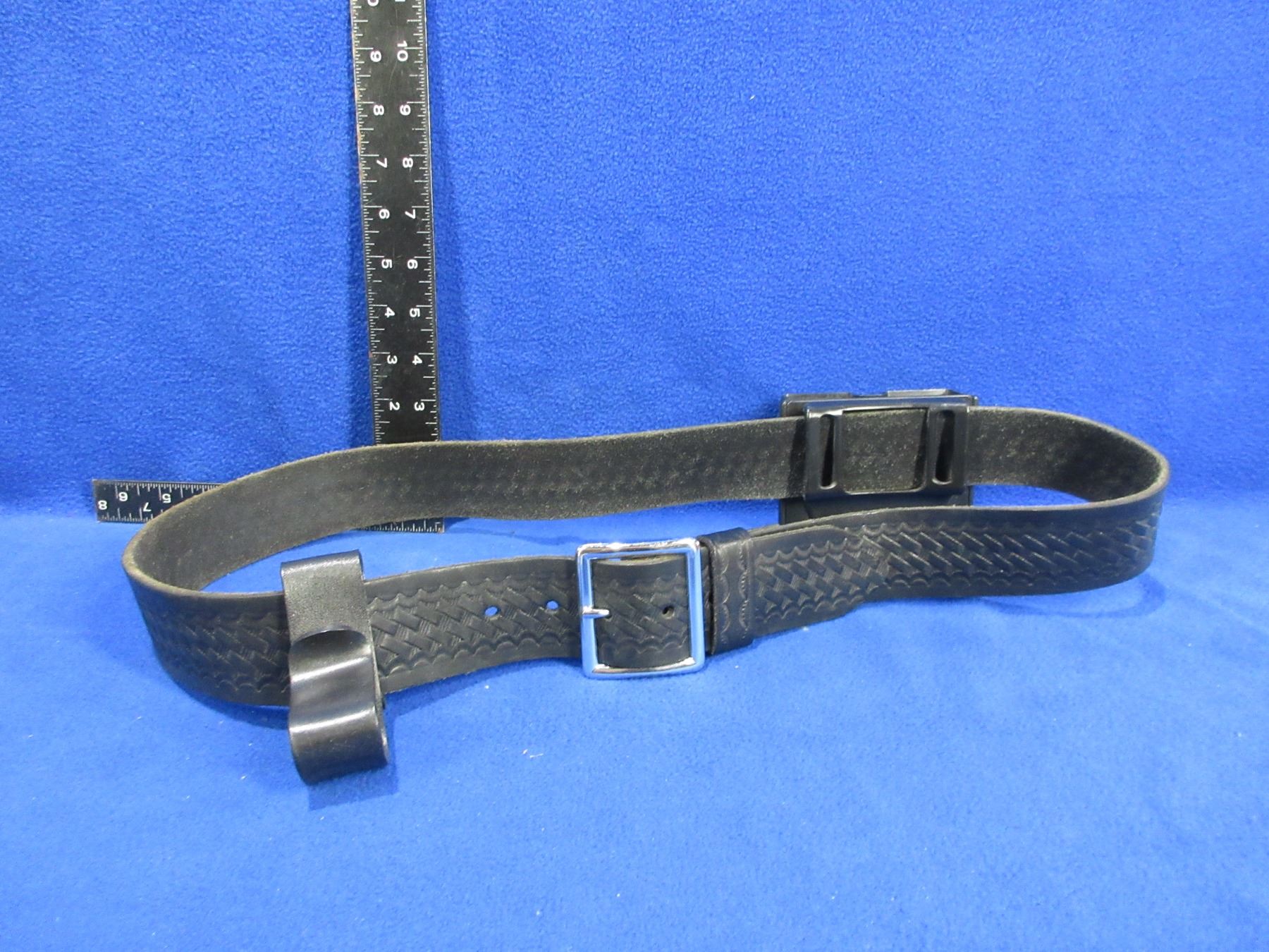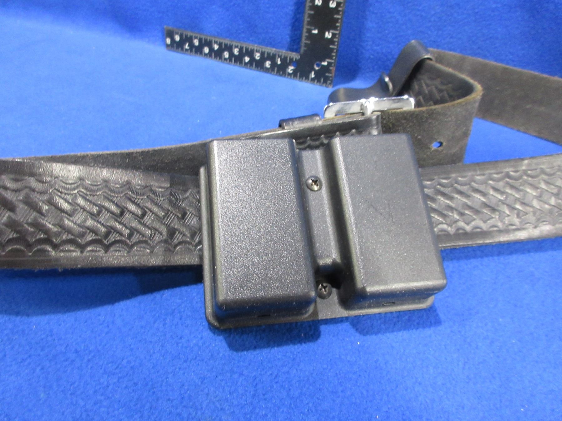 Lot 1529 Leather Duty Belt Marked 42 with Dual Magazine Holder