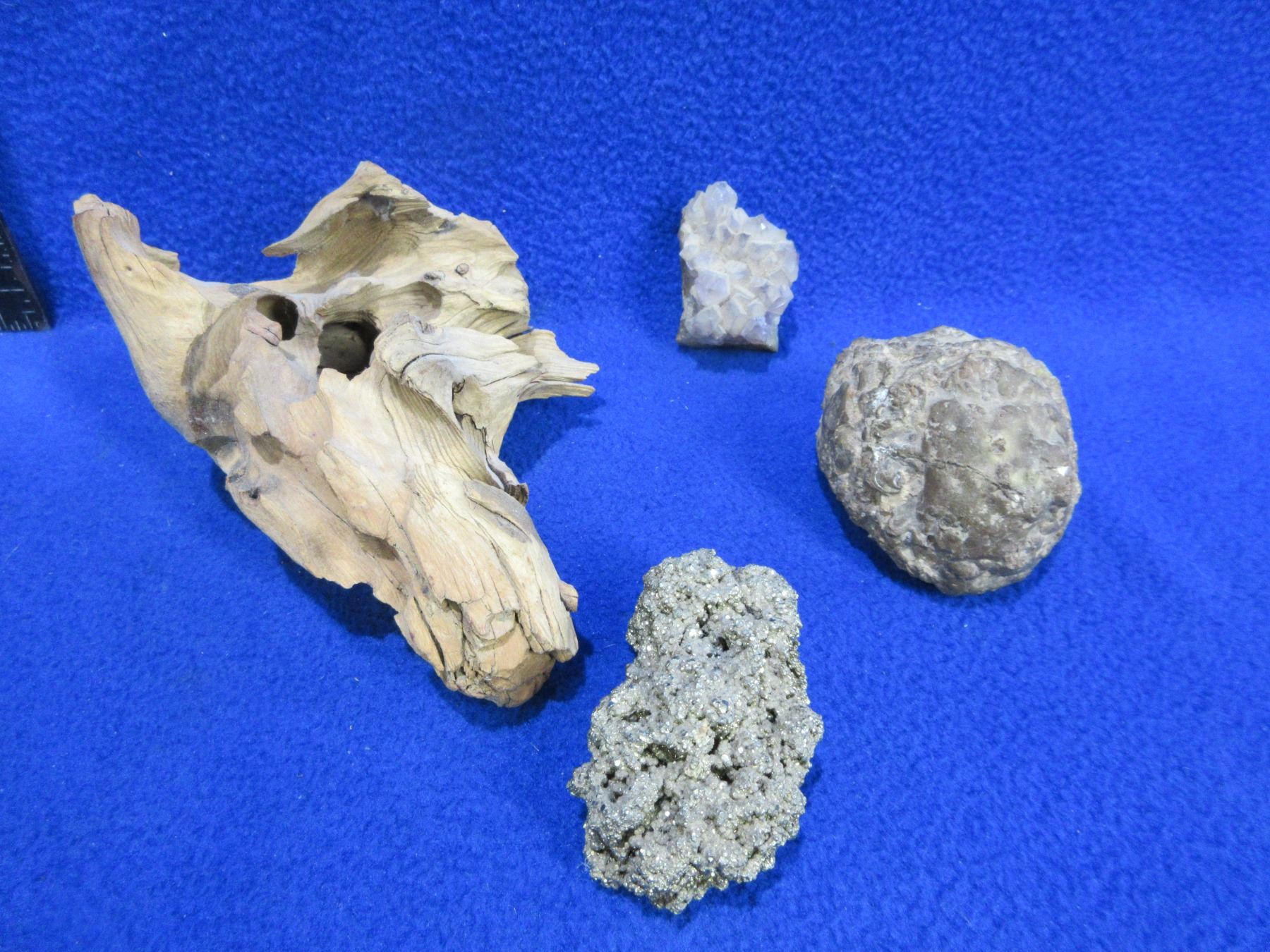 Lot 1565 3 Collectible Rocks and a Piece of Driftwood