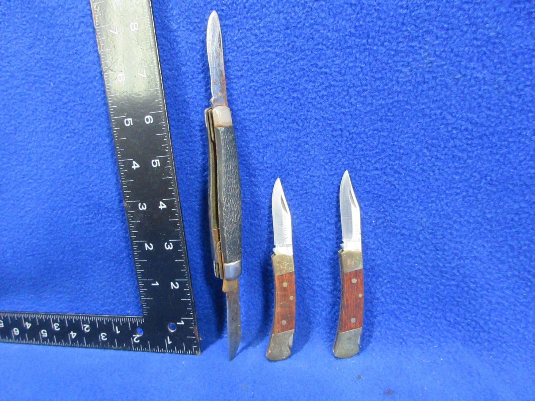 3 Folding Blade Pocket Knives - 1 has a broken blade & is rusted