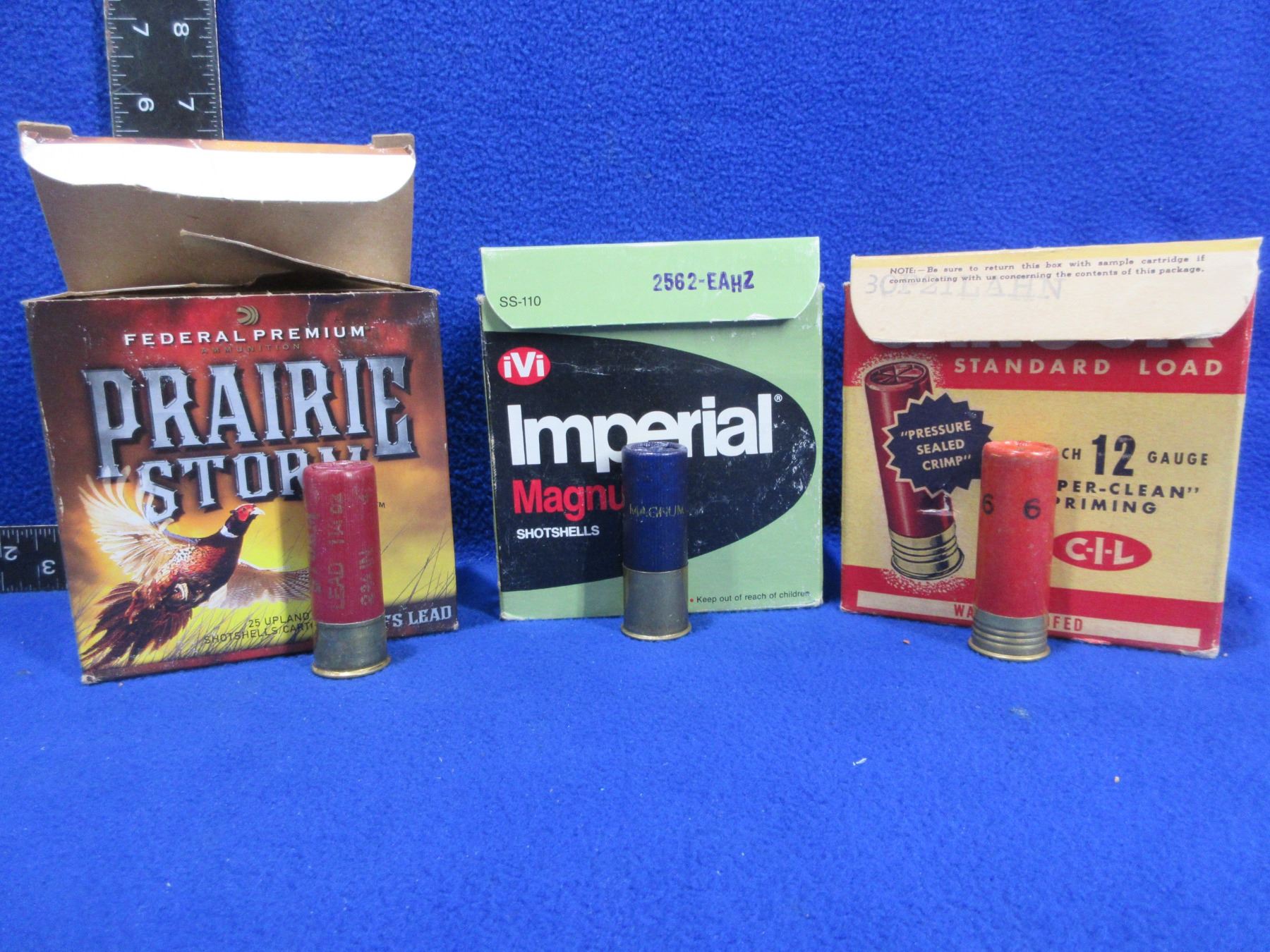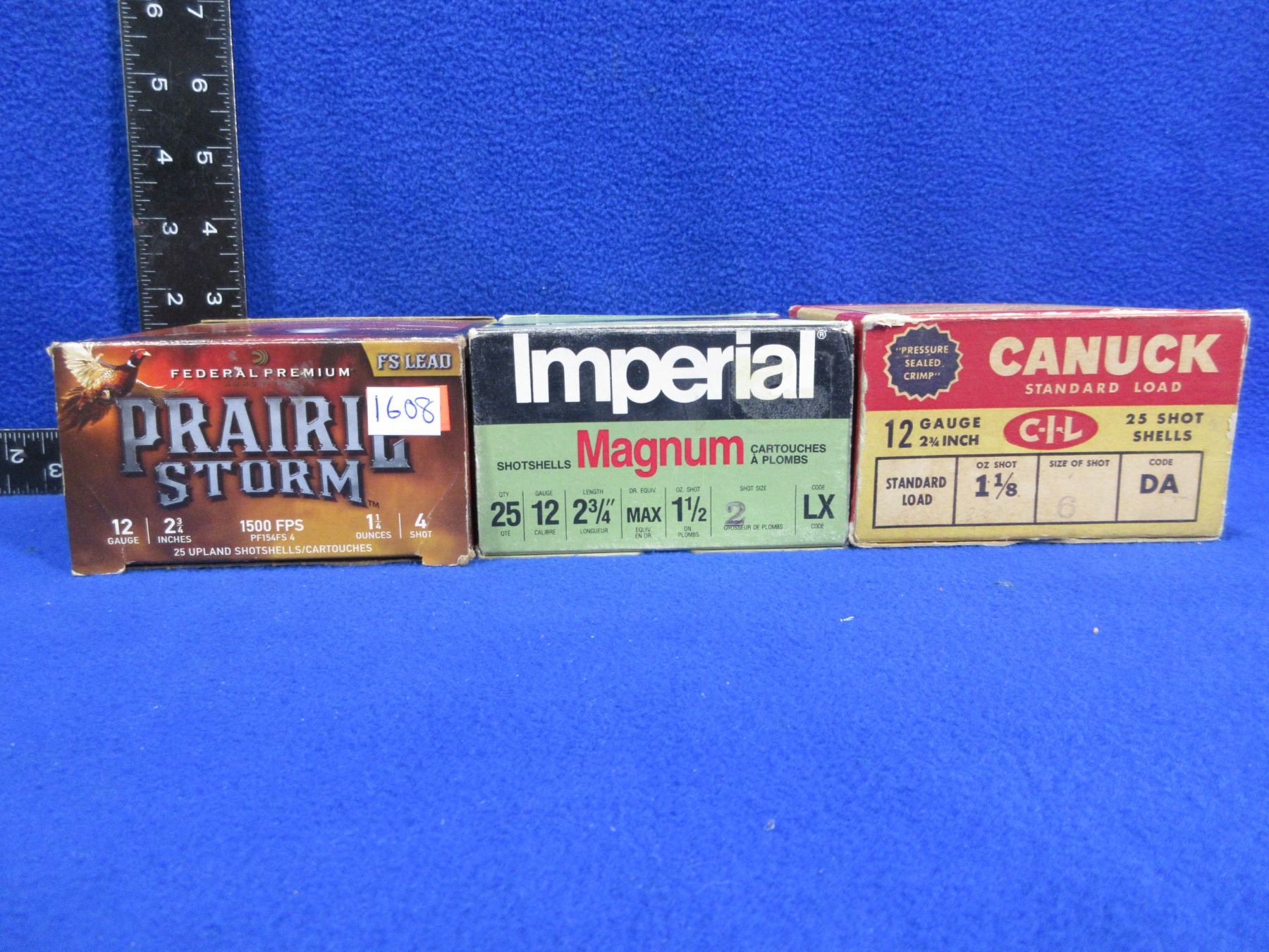 12 Ga. 2 3/4" Mixed Shotshells (Pick Up or Ship by UPS Only) - Box of 25 (Imperial 2 Shot Mag), Box of 12 (Federal 4 Shot), Box of 10 (Canuck 6 Shot Paper in Original Box)