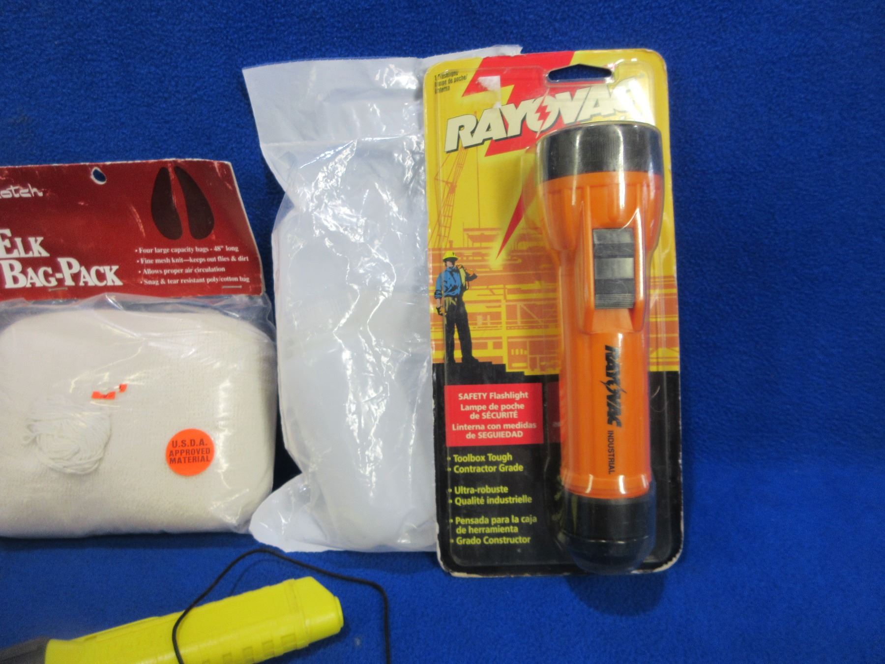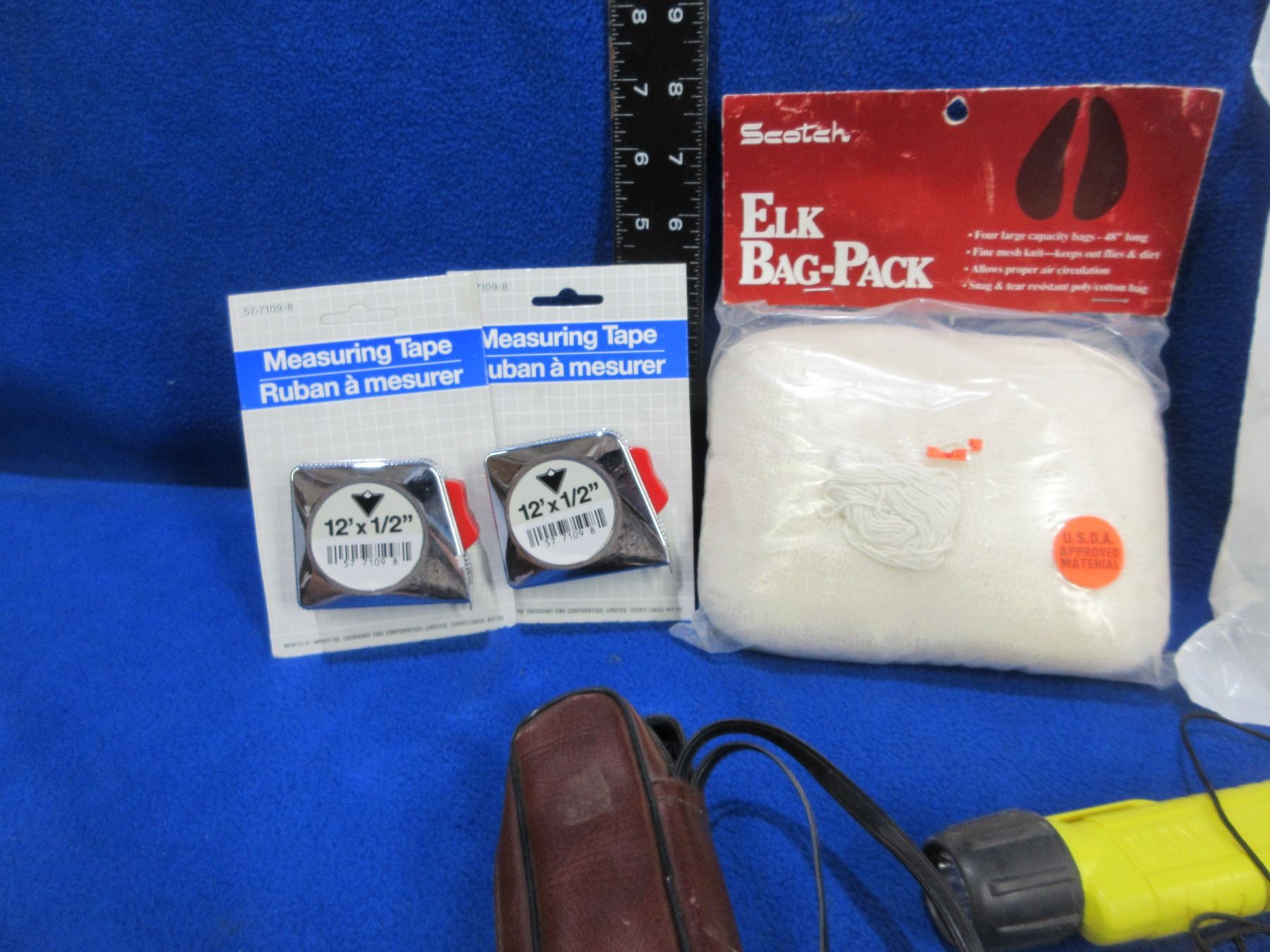 Lot of Misc. - 2 Flashlights, 2 Measuring Tapes, Elk Bag, Powder Bottle, Etc.