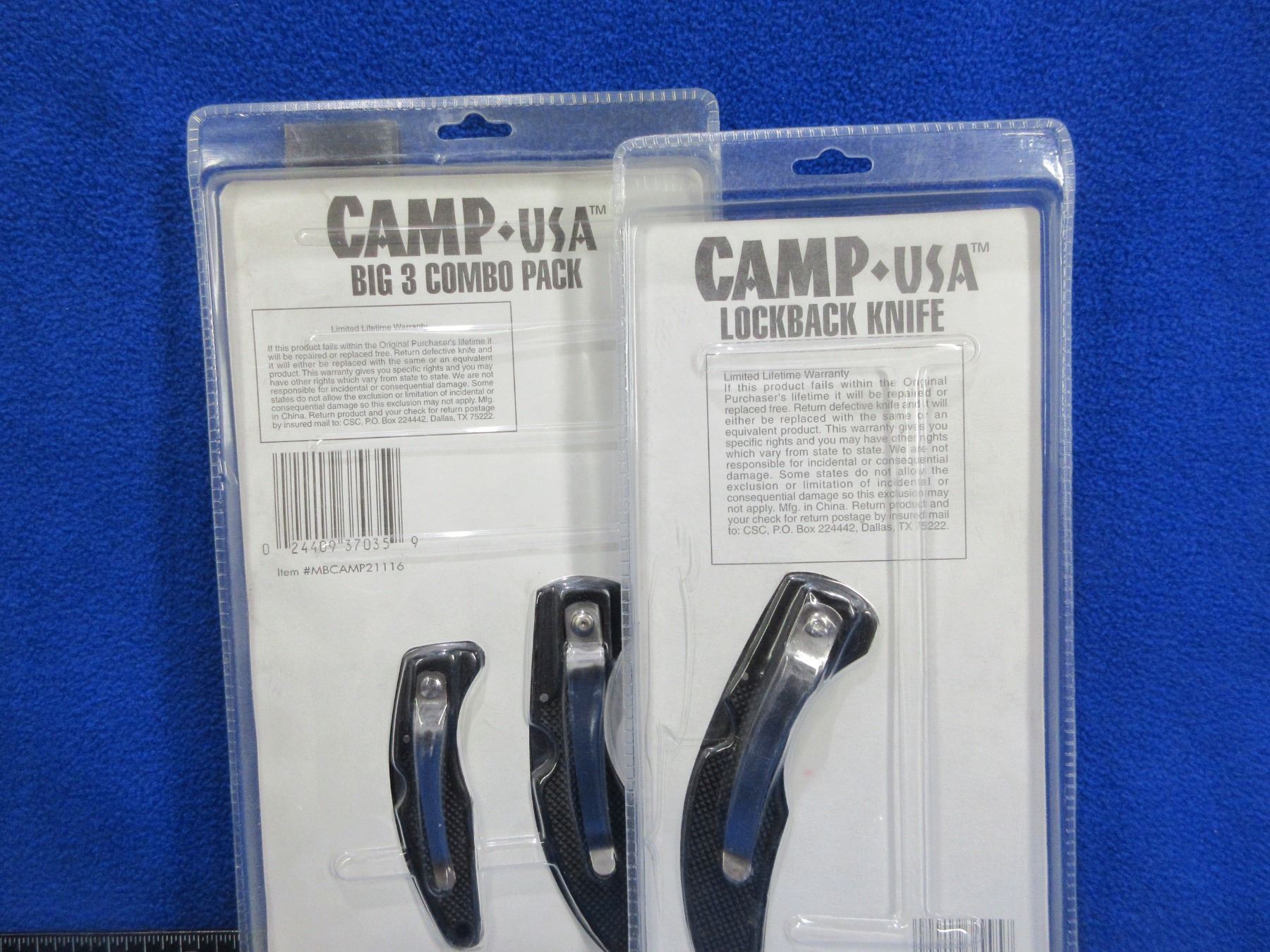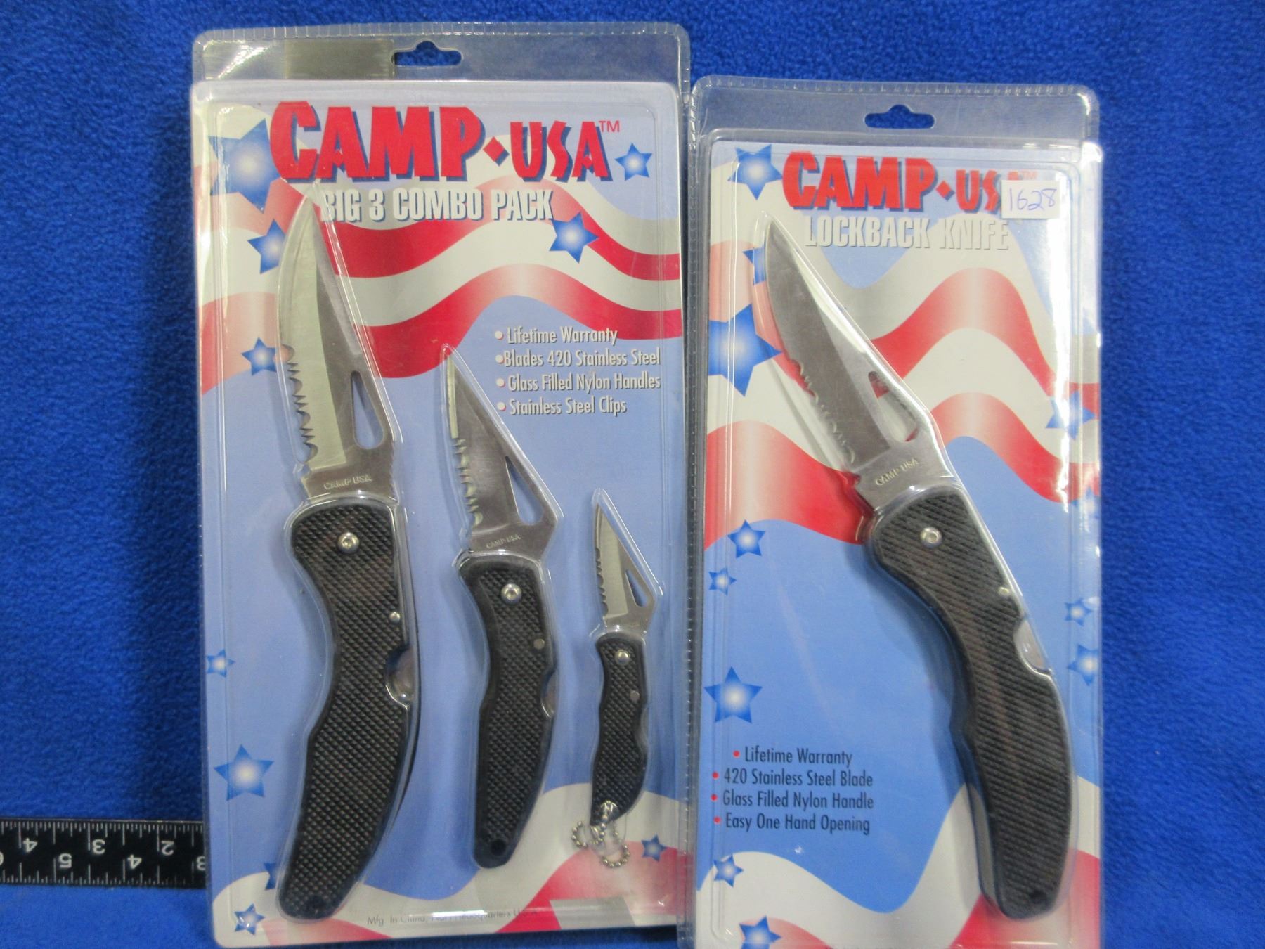 Lot 1628 Camp USA Lockback Knife and Big 3 Combo Pack - New Old Stock