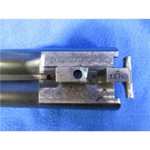 Non-Restricted - Baikal Model IJ-58 in 12 Ga. 2 3/4" - Made in USSR, this is a tip up SXS shotgun, action is tight and appears to be in good to very good working order. Barrels are 28 5/8"", bores are good, bluing is good to very good, has bead front sight, stock is good to very good, forearm is good to very good, length of pull is 14 3/4", rubber recoil pad good, comes with swivels. Ser # E12740