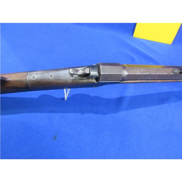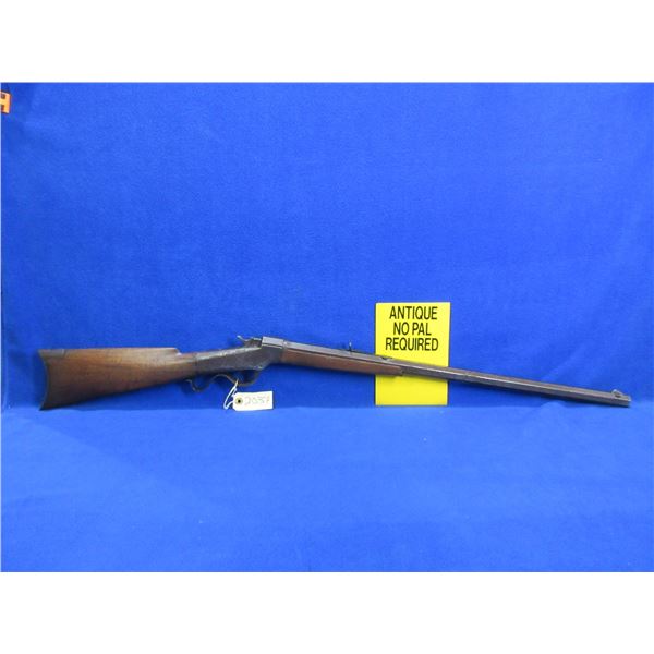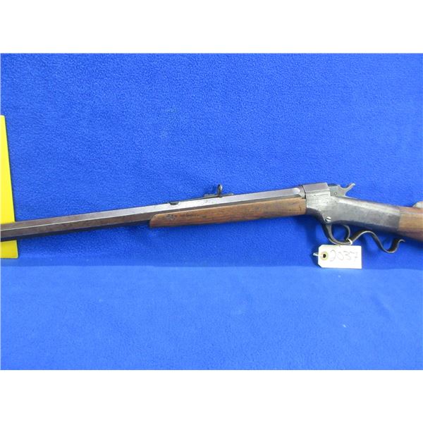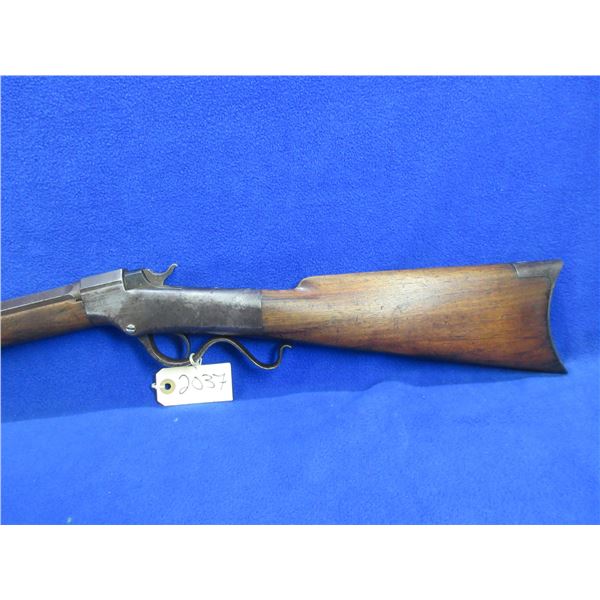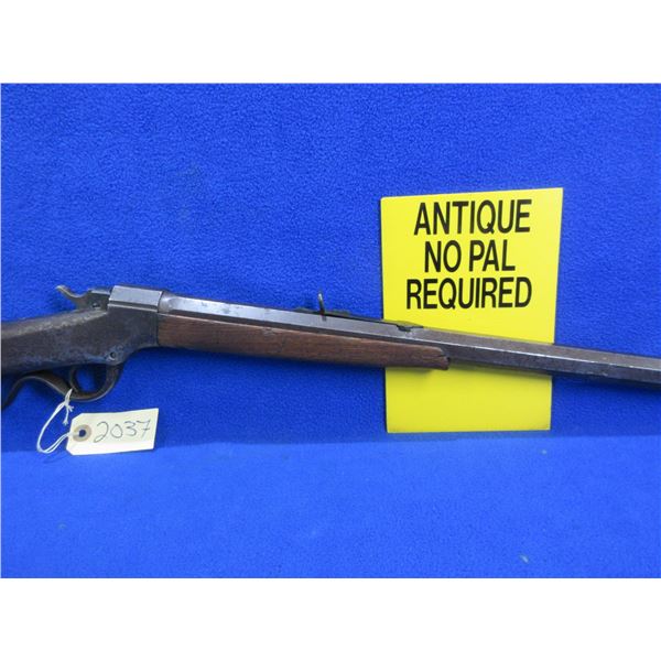 Antique - No PAL Required - J.M. Marlin Ballard in 38 Long/38 Rimfire - This is a single shot falling block rifle, action appears to be in good working order. Action can be switched from 38 Long to 38 Rimfire. 26" Octagon barrel is marked J.M.MARLIN NEW HAVEN CONN / BALLARD'S PATENT NOV 5 1861 on the left side, rifling is poor, bluing is turning brown and has some pitting, has front sight and Buckhorn rear sight, stock has cracks in the wrist area, forearm has a small crack on the right side at front, length of pull is 13 1/2", crescent metal butt plate good. Ser # 16678