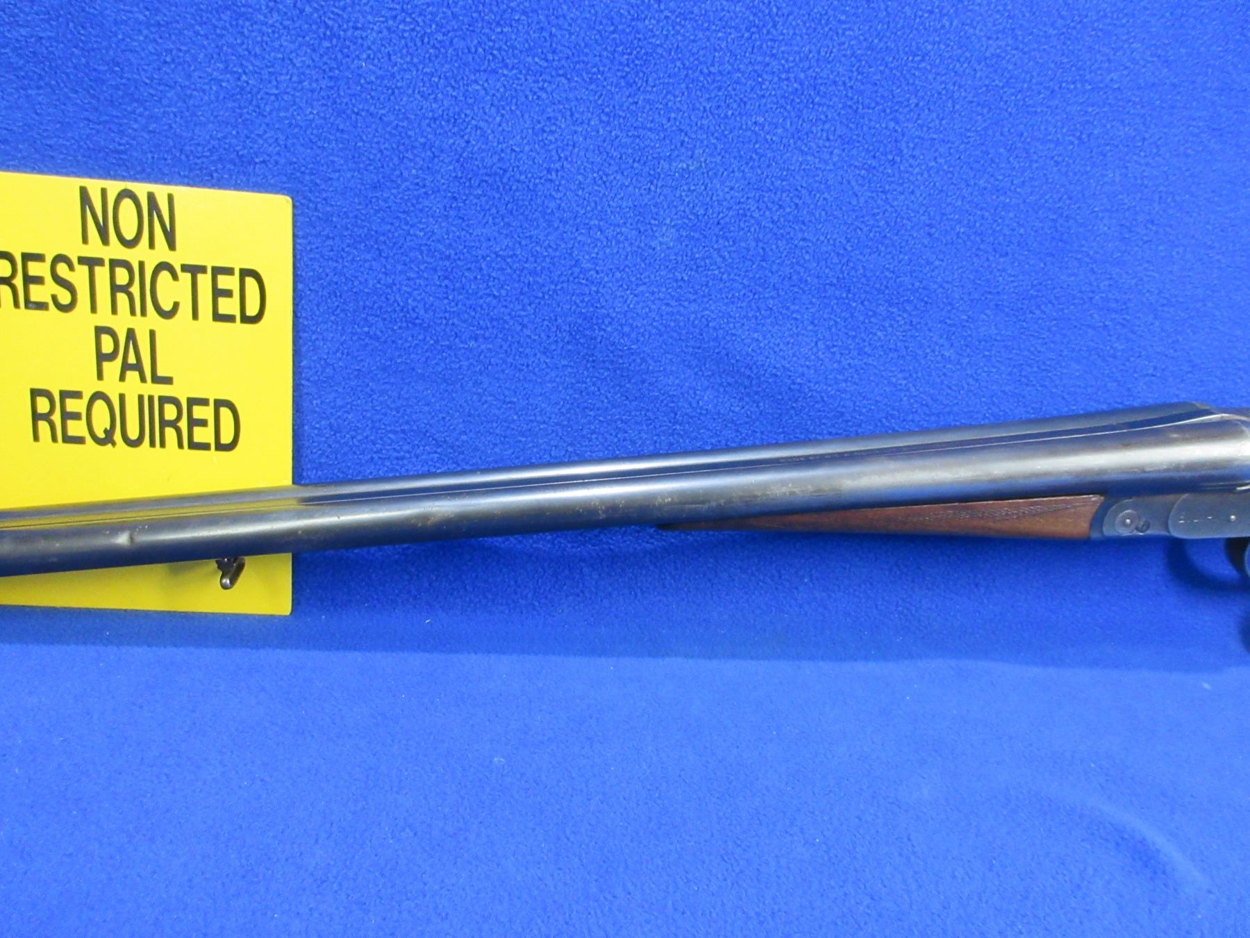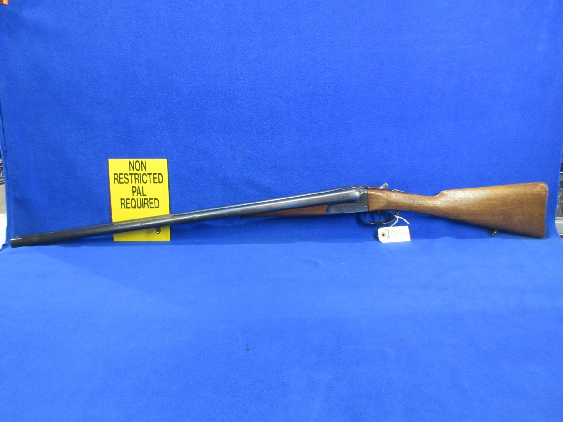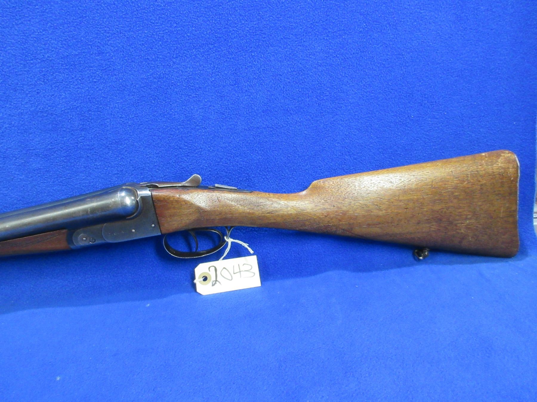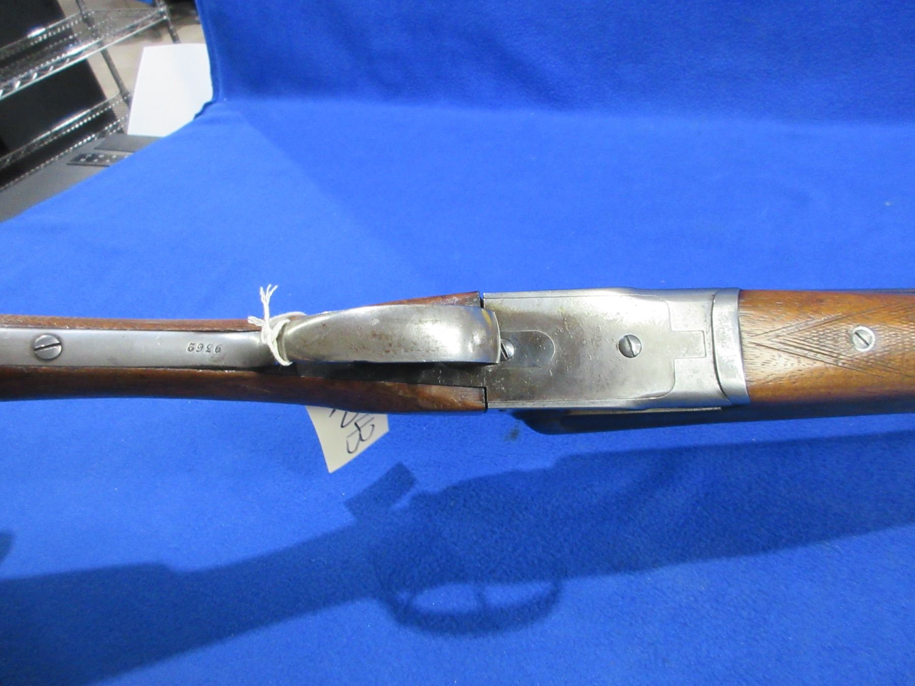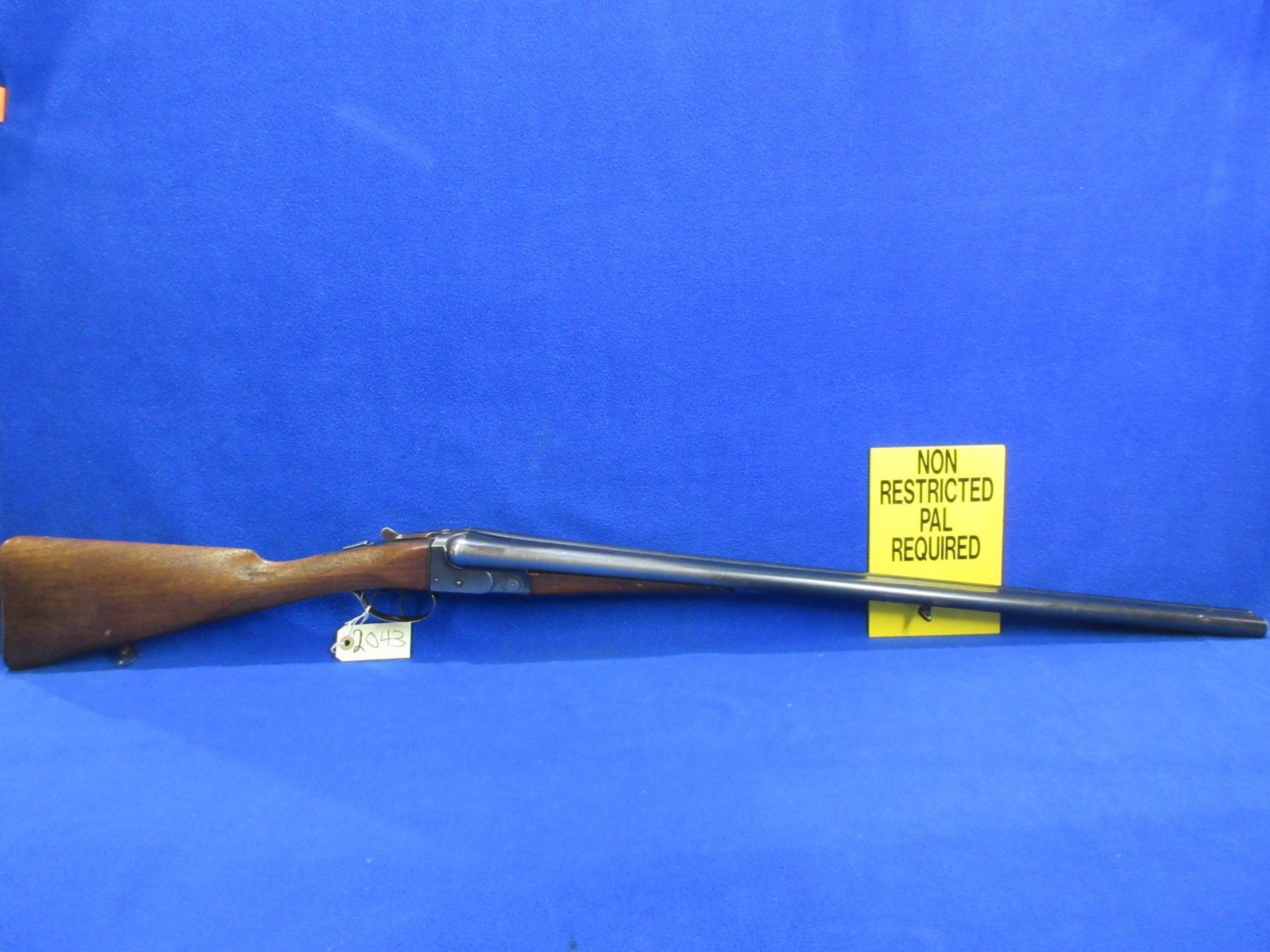 Non-Restricted - BSA SXS in 12 Ga. 2 1/2" - This is a tip up SXS shotgun, action is tight and appears to be in good working order but should not be fired as both barrels have dents. Barrels are 30", bores are good but both barrels have 2 dents each, bluing is fair to good with wear patches, has bead front sight, stock has a hairline crack behind upper tang, forearm is good with many usage marks, length of pull is 14 1/2", comes with swivels. Ser # 9362