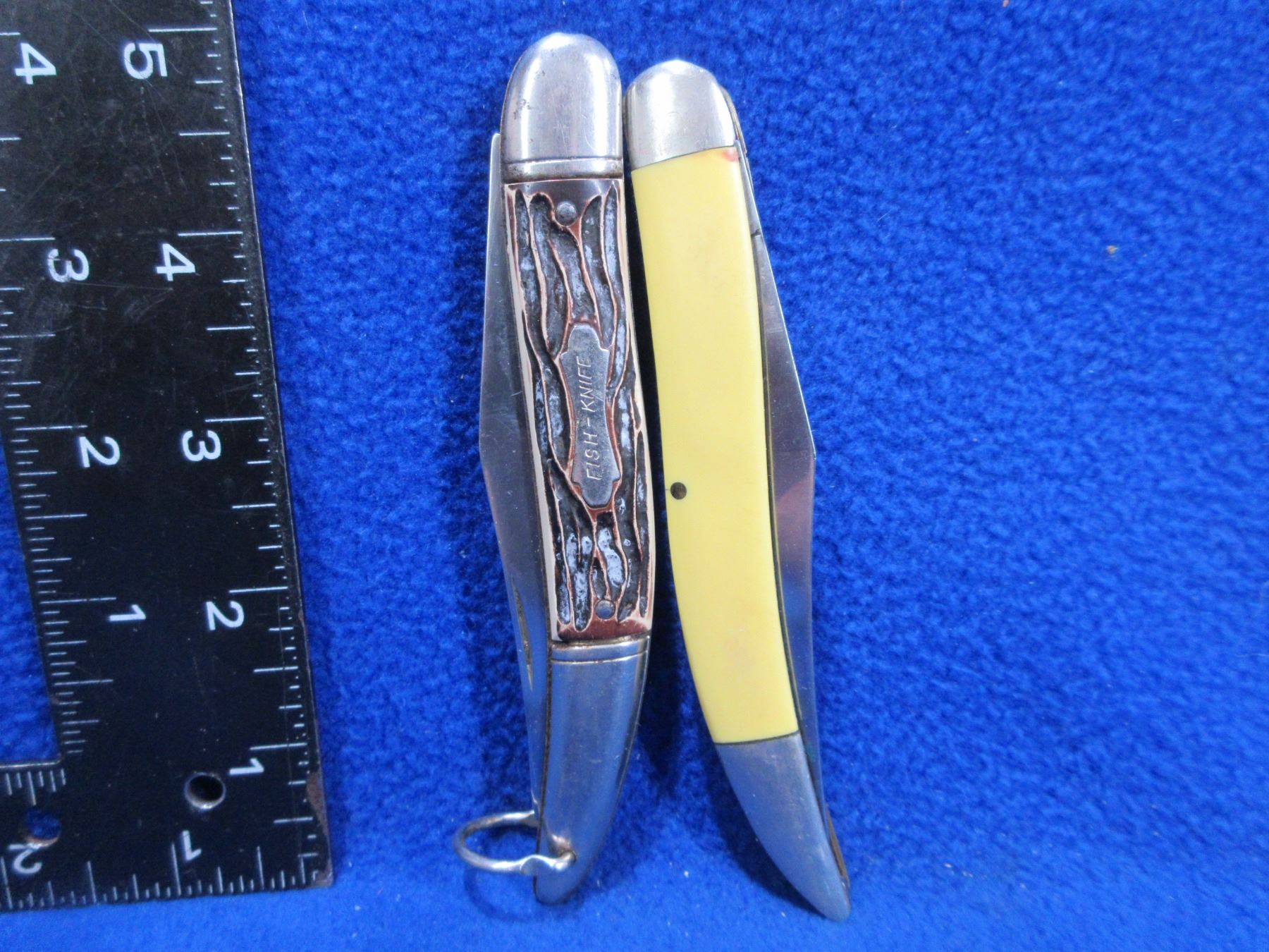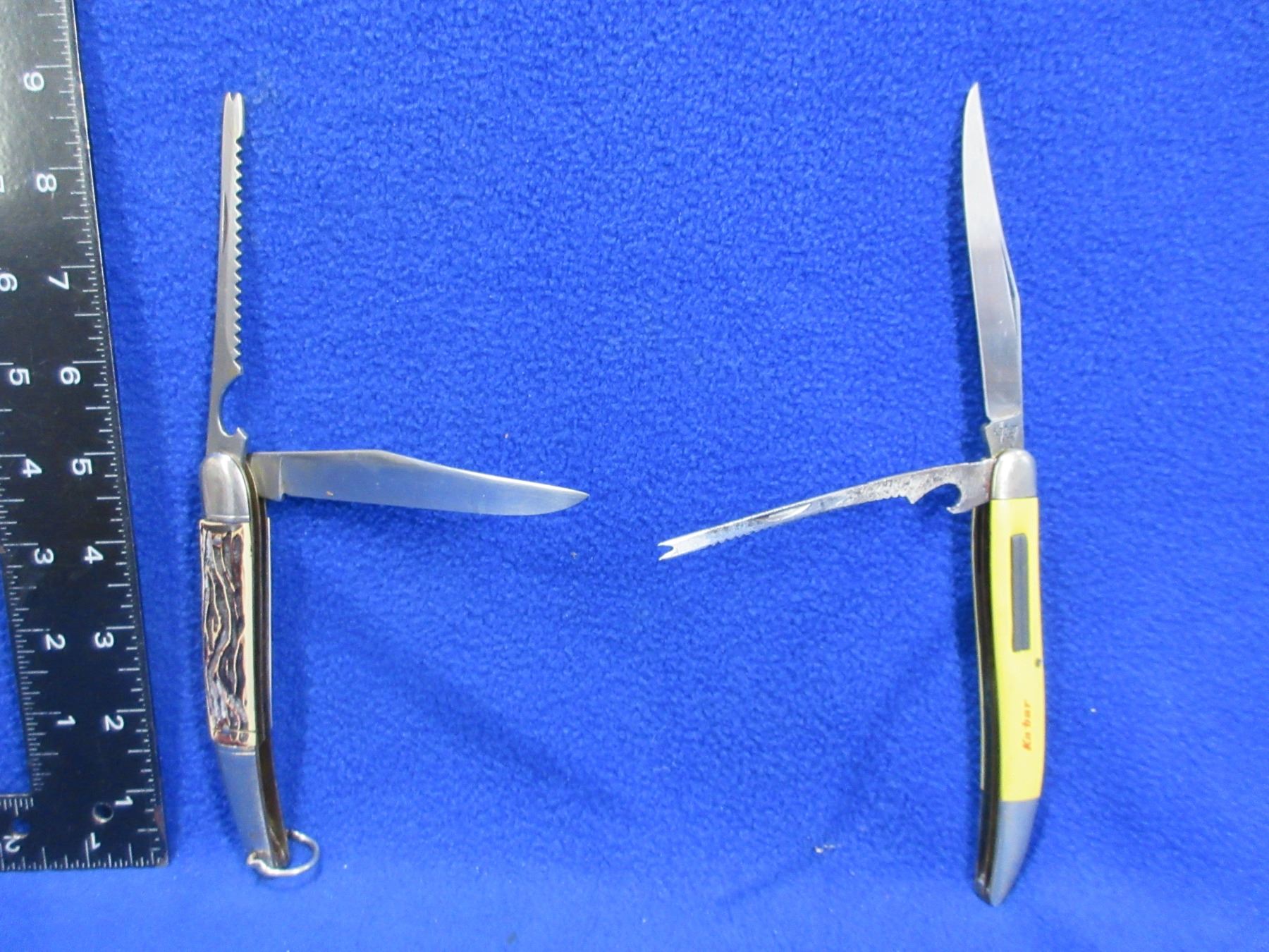 2 Folding Blade Fish Knives - Stainless Colonial, Kabar 1128 - Colonial has a crack on 1 side of the handle