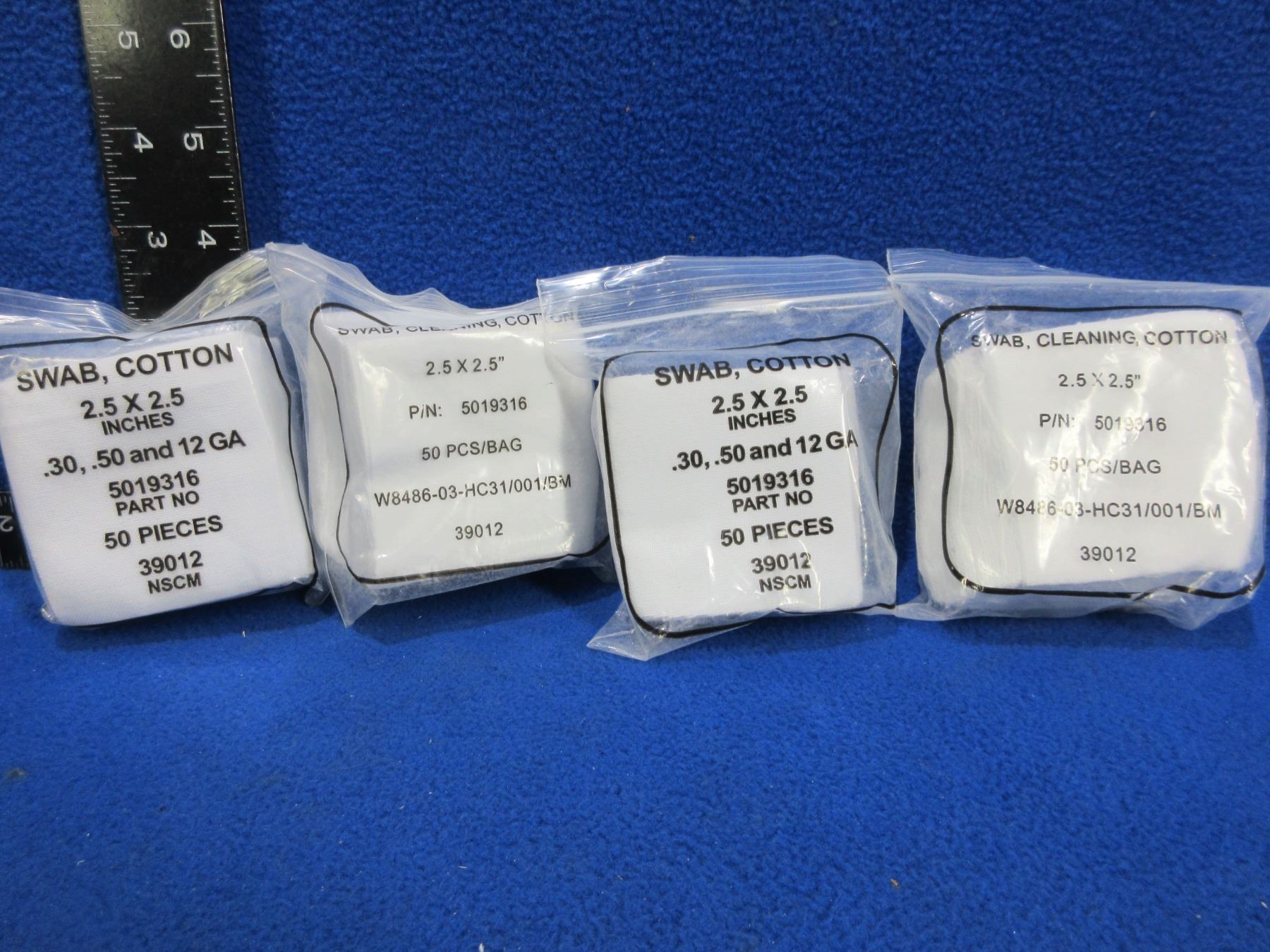 Lot 2097 NEW - Cotton Swabs - 2.5" x 2.5" - 4 Packs of 50