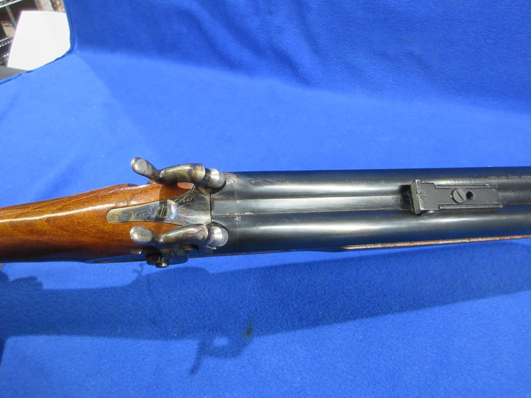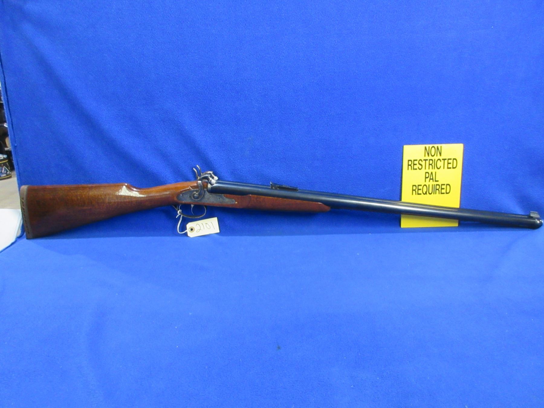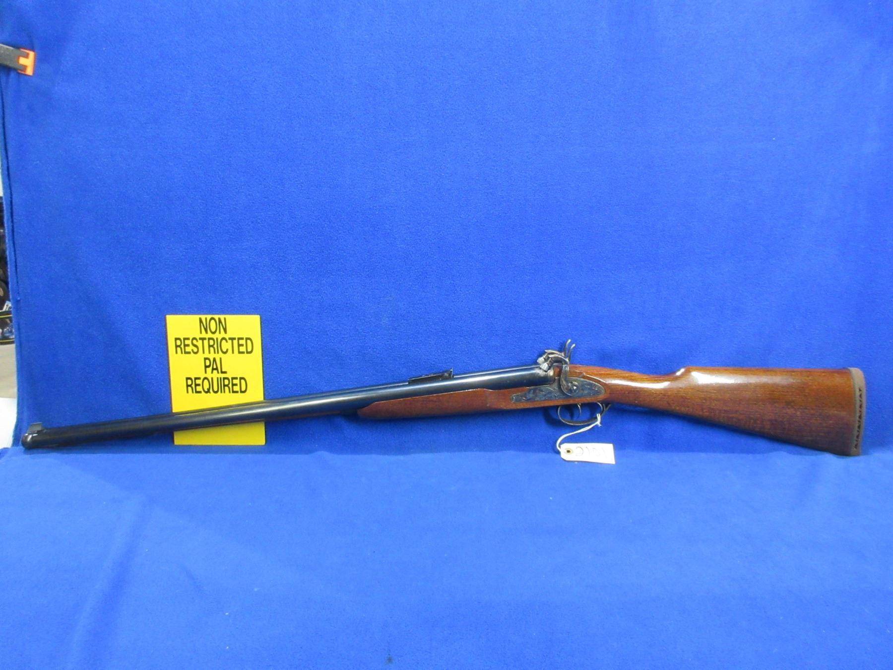 Non-Restricted - Spain Express SXS 209 Primer Muzzleloader in 50 Cal. - This is a muzzleloading 209 primer SXS hammer black powder only rifle, case hardened action appears to be in good to very good working order. Barrels are 28", rifling appears good, bluing is good to very good, has both sights, stock is good to very good with usage marks, length of pull is 14 3/4", rubber recoil pad good, comes with ramrod. Ser # 797177