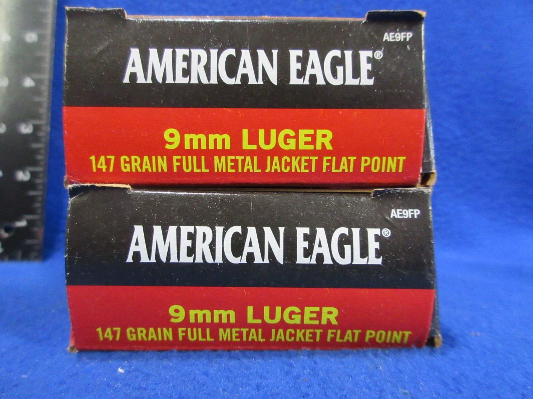 9MM Luger 147gr FMJ FP Federal (Pick Up or Ship by UPS Only) American Eagle Cartridges - 2 Boxes of 50