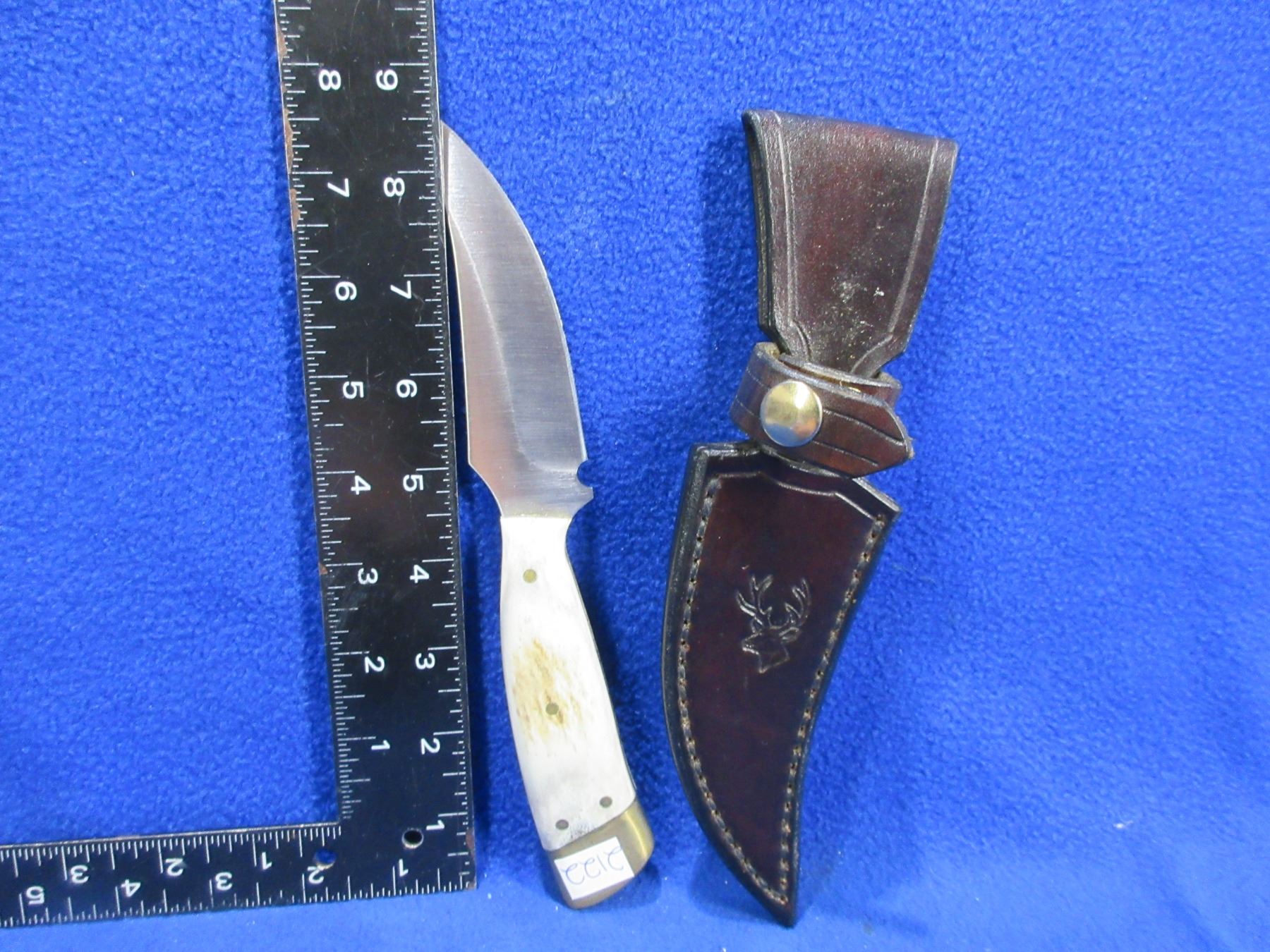 BCK Fixed Blade Knife with Leather Sheath - 4 1/4" Blade, 8 3/4" Total Length - Appears Unused