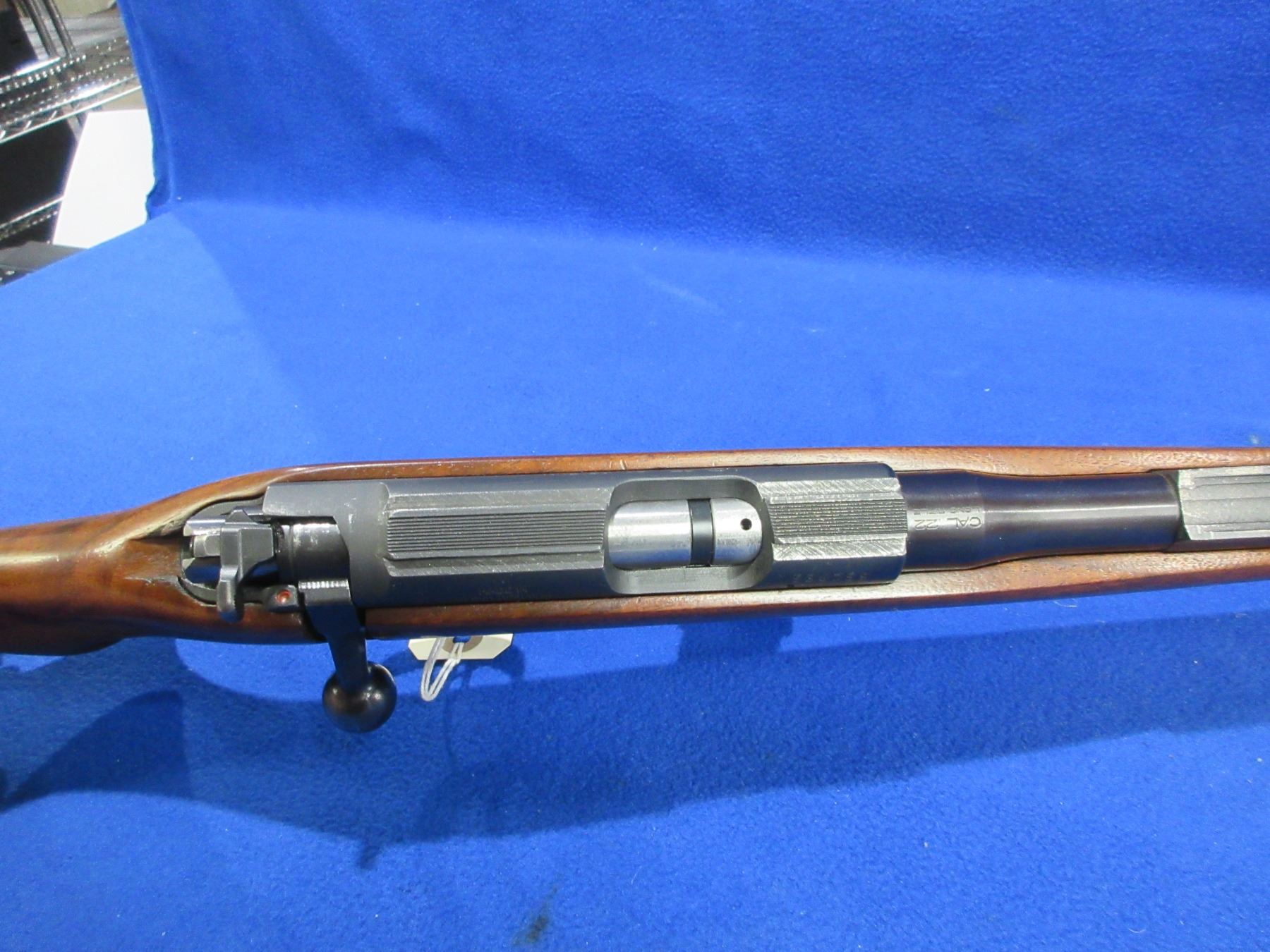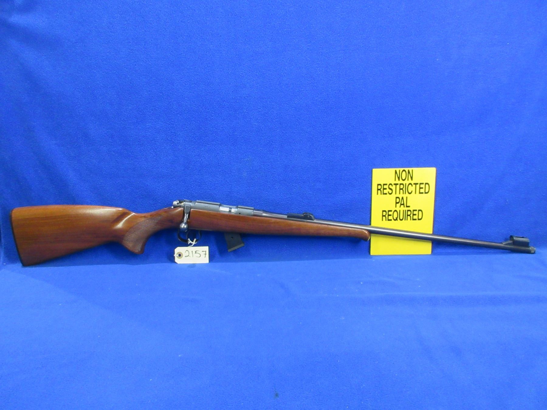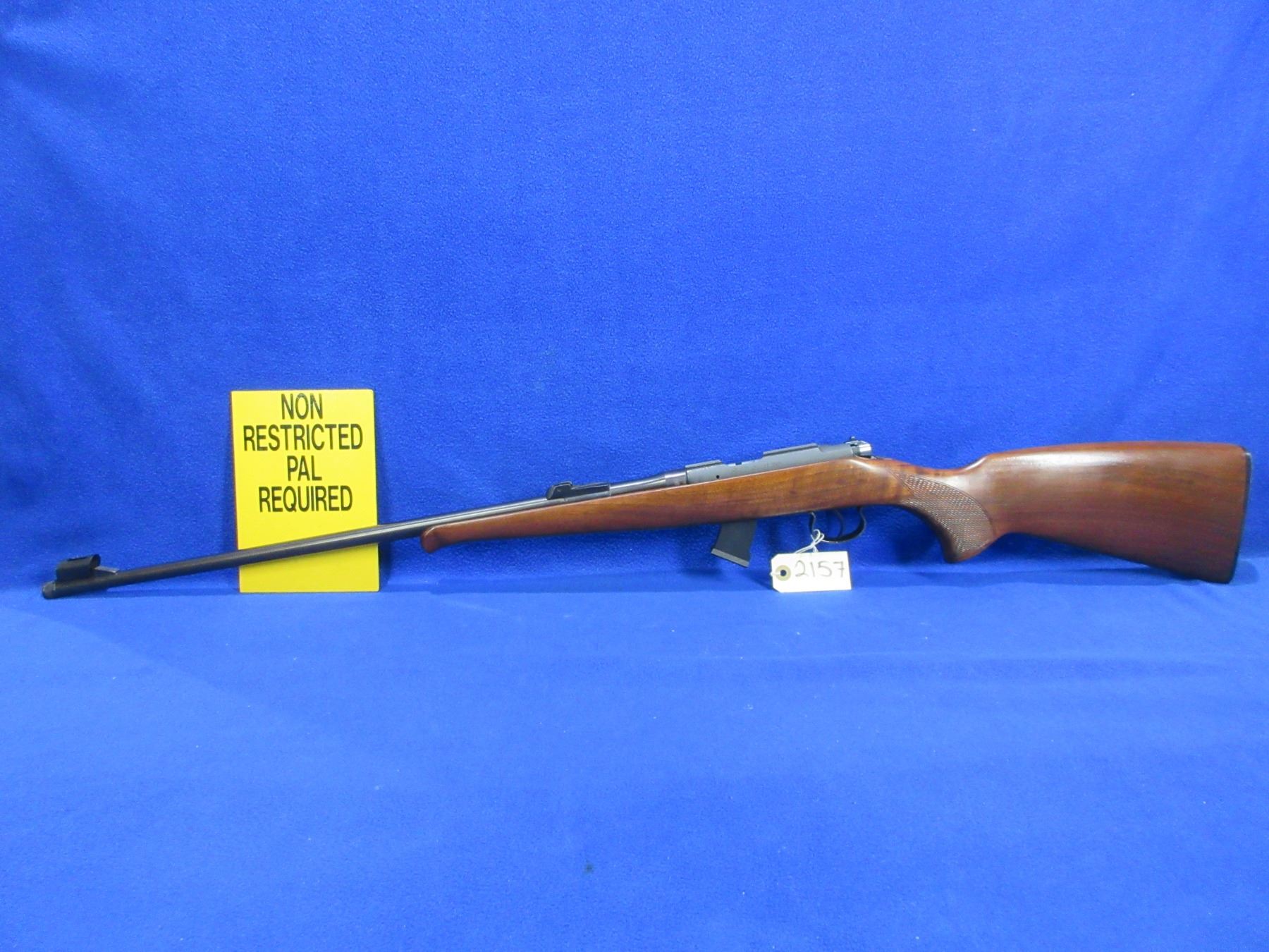 Non-Restricted - CZ Model 452-2E ZKM in 22 LR - This is a bolt action rifle with removable magazine, action appears to be in good to very good working order. Threaded barrel with thread cap is 25", rifling is good to very good, bluing is good to very good, has front sight, rear sight missing but has integral .22 rail, stock is good to very good with udage marks, length of pull is 14", butt plate good, swivel studs missing. Ser # 536759