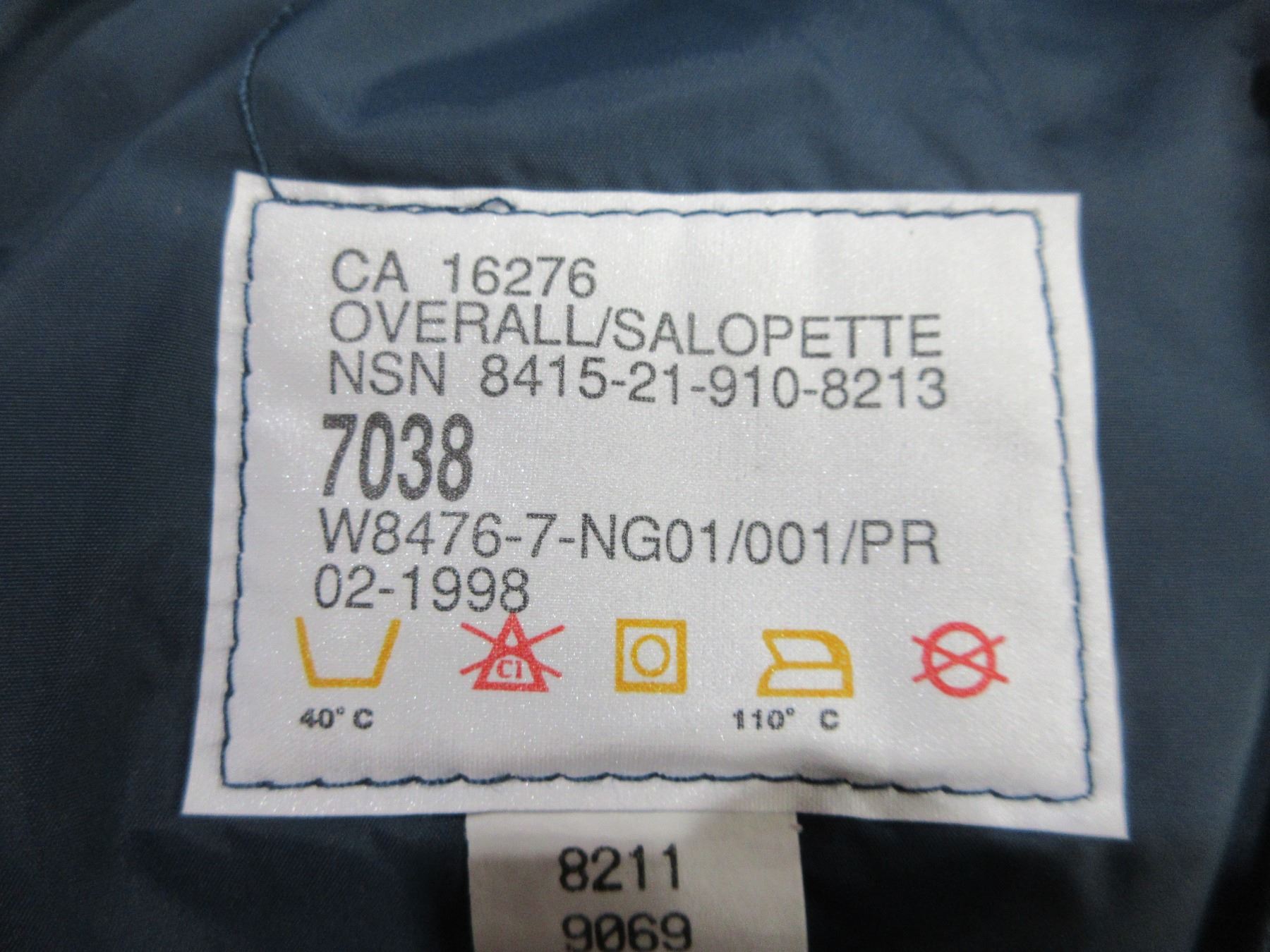Lot 2167 Bib Overall 7038 - Height 70, Waist 38 - Unused Military Surplus