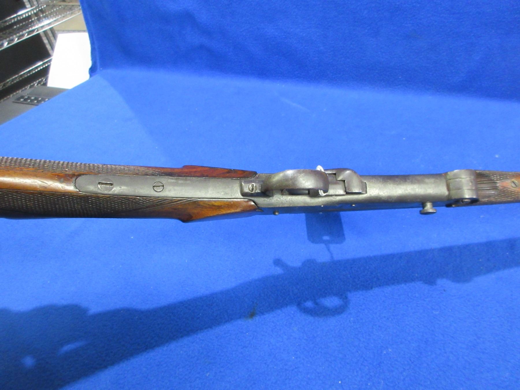 Non-Restricted - Unknown Belgian Light Weight Single Shot in 410 Ga. 2 1/2" - This is a tip up single shot shotgun, action is tight and appears to be in good working order. Octagon-to-round barrel is 25 1/2", bore is good, bluing is turning brown with light pitting, has bead front sight, stock is good with usage marks, forearm is good to very good with usage marks, length of pull is 14 1/2", metal butt plate. Ser # None