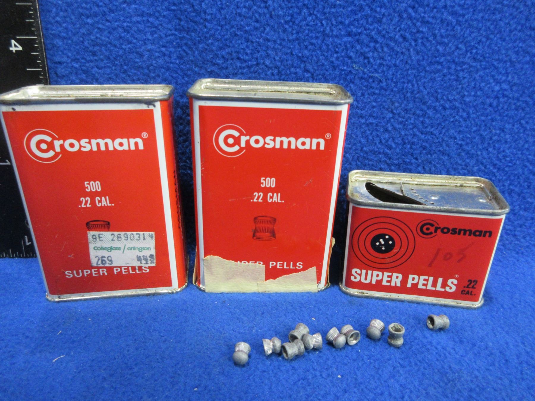 .22 Cal. Crosman Super Pells - 2 Tins of 500 (Appear Full) & 1/3 Tin of 250