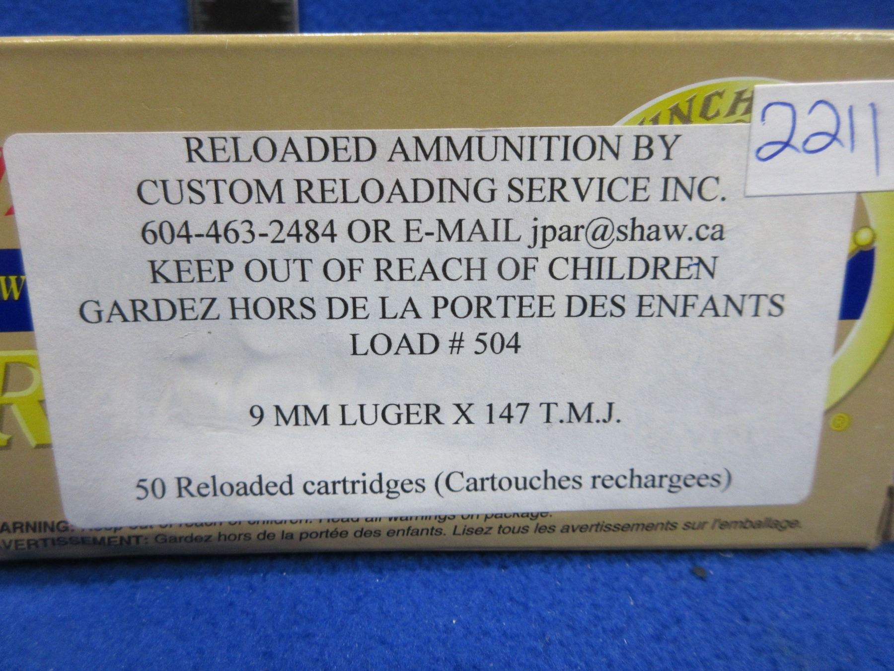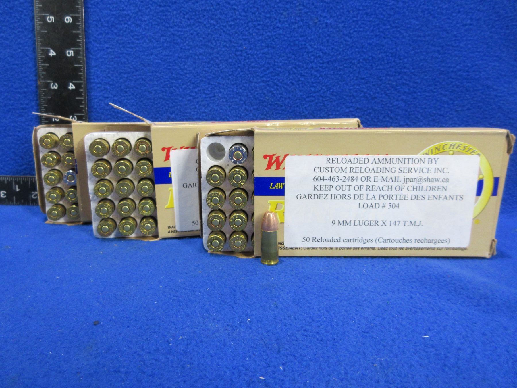 9MM Luger 147gr TMJ Factory Reloads (Pick Up or Ship by UPS Only) - Custom Reloading Service Inc. - 3 Boxes of 50