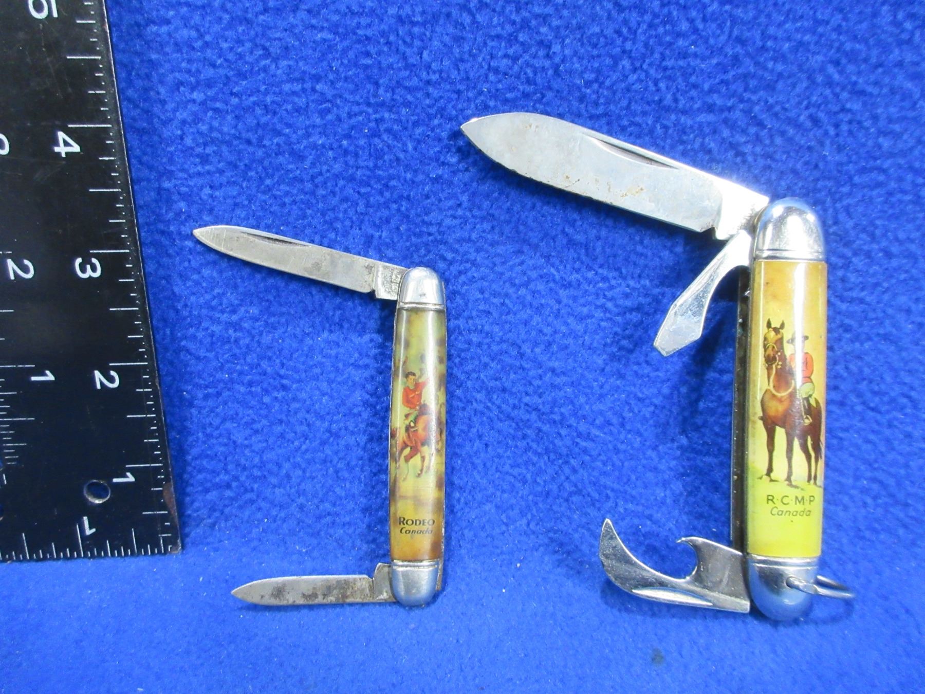 2 Vintage Folding Pocket Knives - RCMP Canada & Rodeo Canada