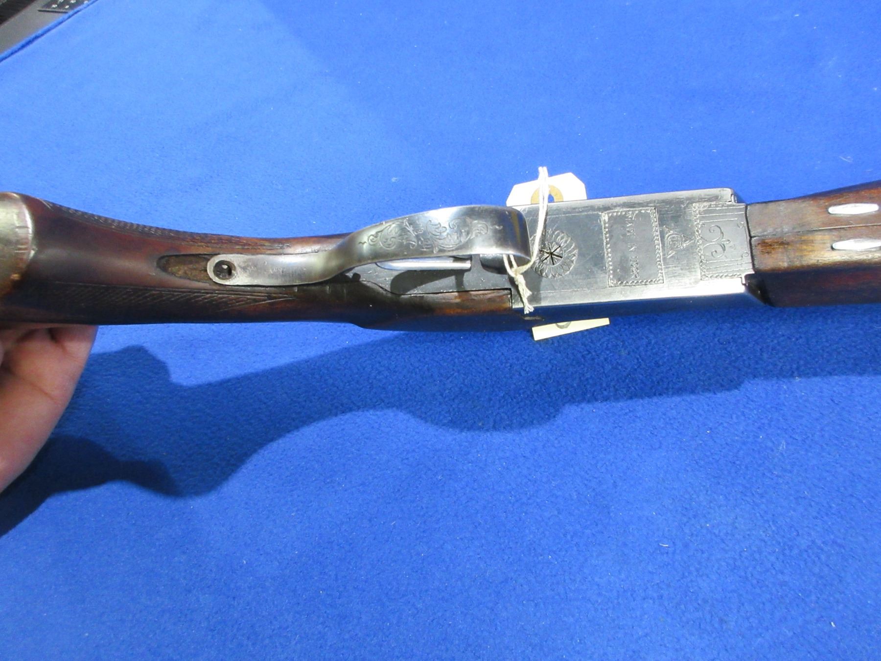 Non-Restricted - TOZ Model 34P in 12 Ga. 2 3/4" - Made in USSR, this is an over/under shotgun, nicely engraved action is tight and appears to be in good working order. Barrels are 28", bores are good, bluing is good, has bead front sight, stock is good with usage marks, forearm is good with usage marks, length of pull is 14 1/4", rubber recoil pad incorrectly fitted, trigger guard is missing back screw, comes with swivels. Ser # 26455