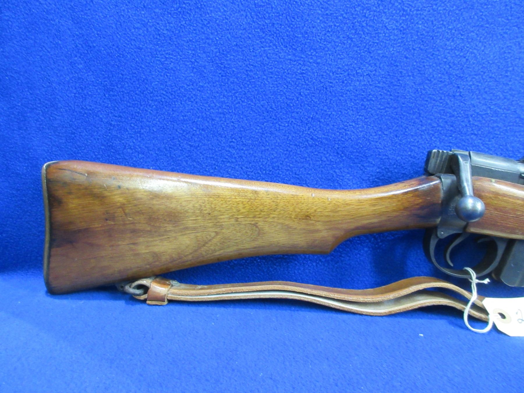 Non-Restricted - Lee Enfield No 1 Mk III in 303 Brit - This is a bolt action rifle with removable magazine, action appears to be in good to very good working order. Barrel is 25", rifling is good, bluing is good to very good, has both sights, stock and forearm are good to very good, length of pull is 13 1/4", butt plate good, comes with swivels and leather strap. Ser # 19734