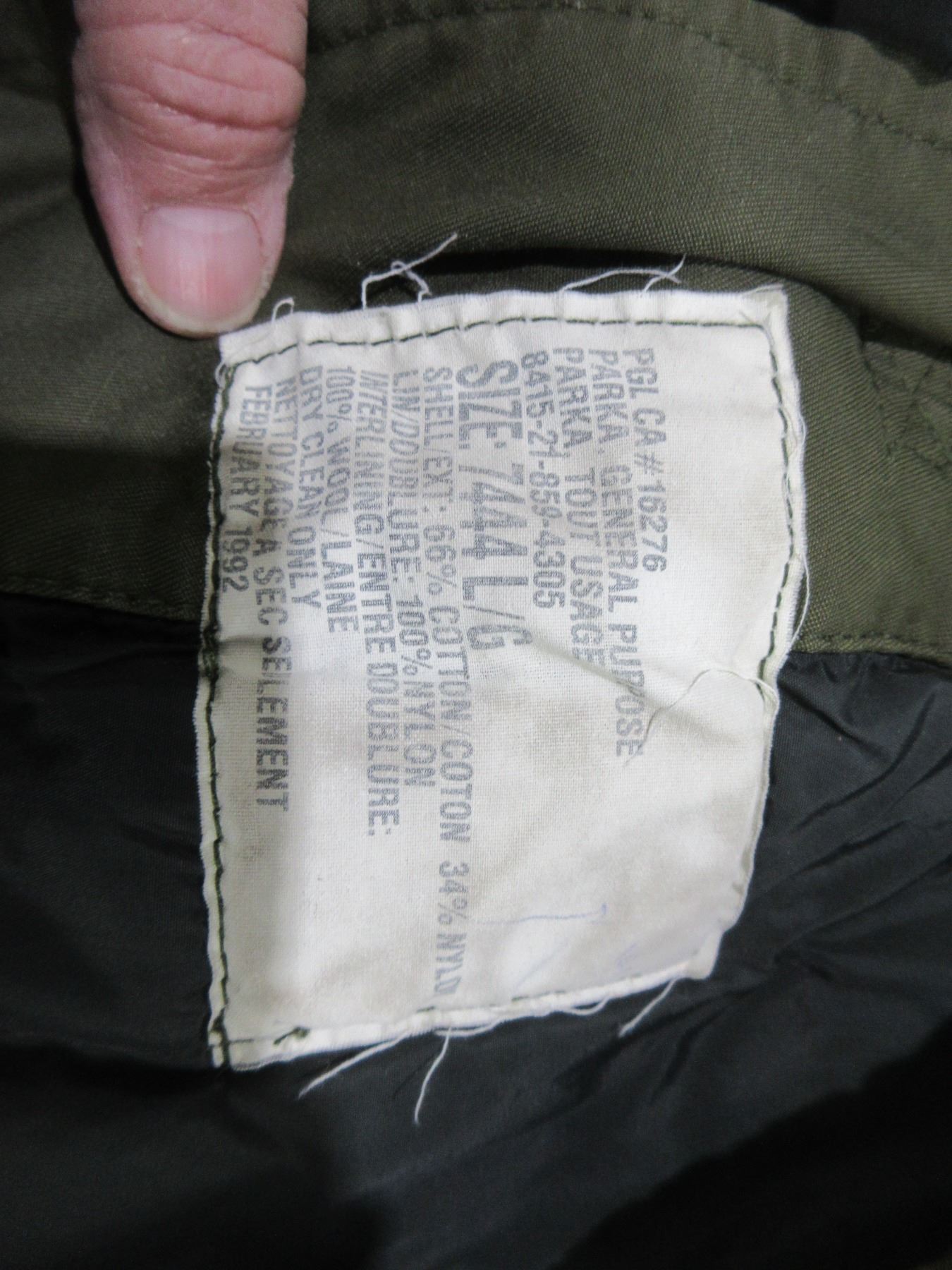Lot 2255 Canadian Military Surplus General Purpose Parka - Size 7444