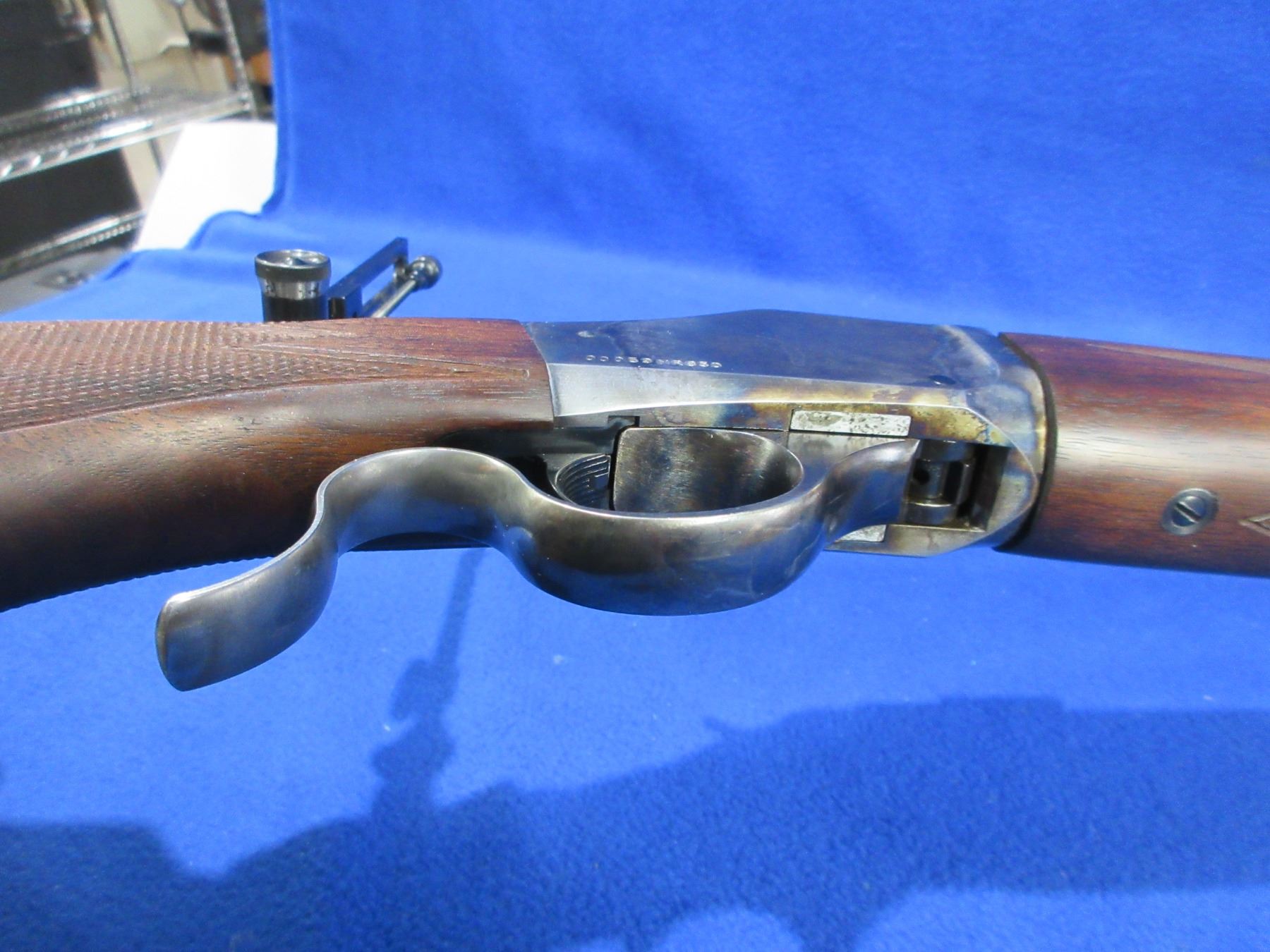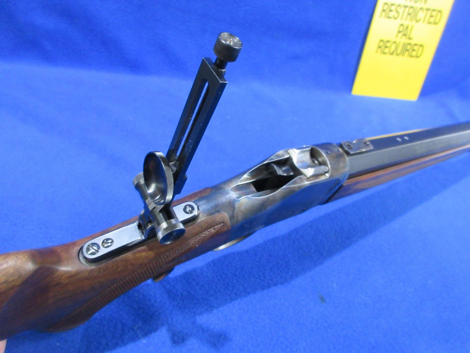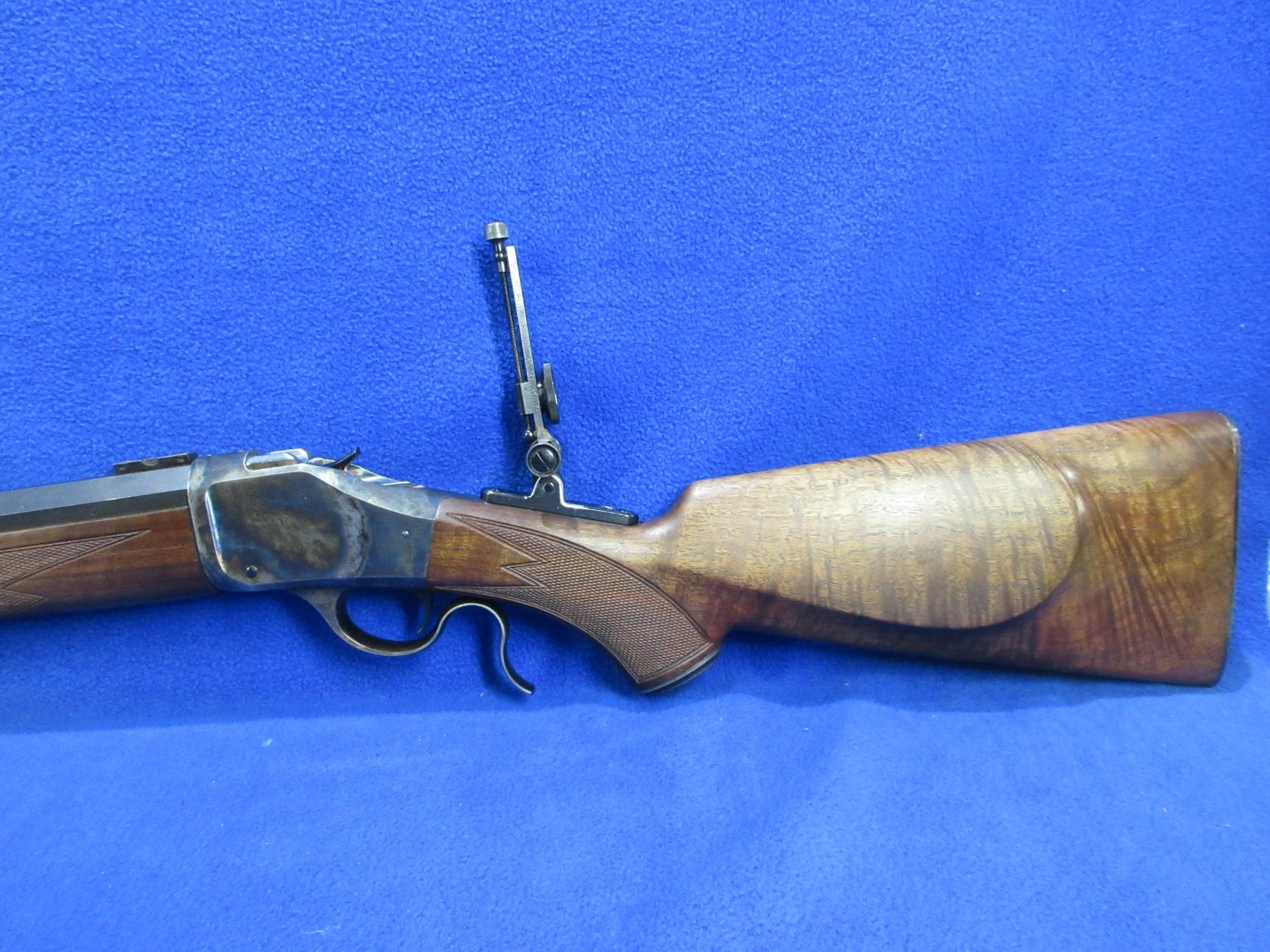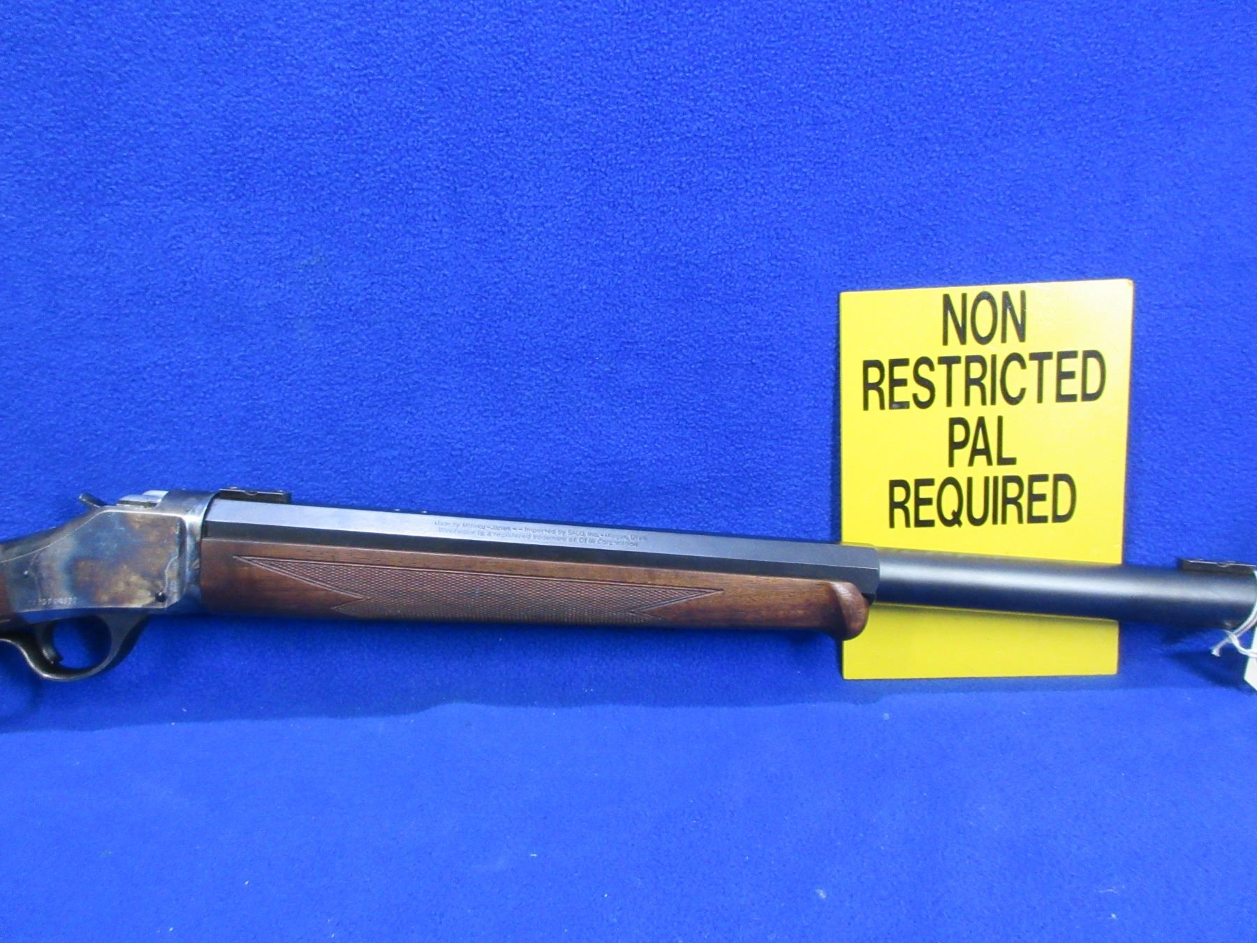 Non-Restricted - Winchester 1885 High-Wall Limited Series BPCR Target in 45-90 Black Powder Only - This beautiful single shot falling block rifle is like new, case hardened action is in very good working order. Octagon to round heavy barrel is 30", rifling is very good, bluing is very good, has both sights and bases for period correct target scope, high grade walnut stock and forearm have beautiful grain and are in very good condition, length of pull is 13 3/4", case hardened metal butt plate very good. Ser # OOO59MR850