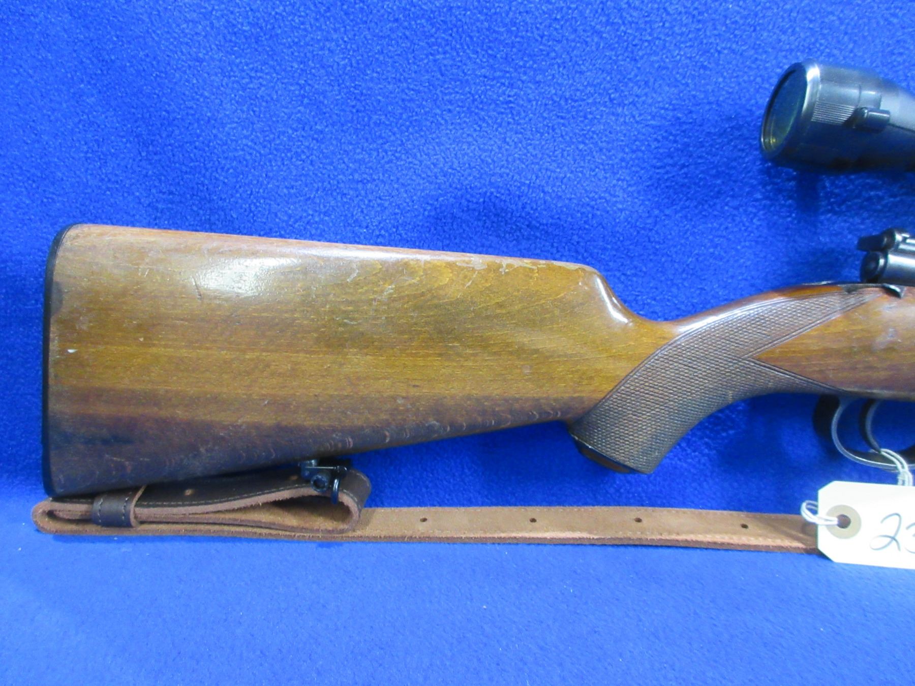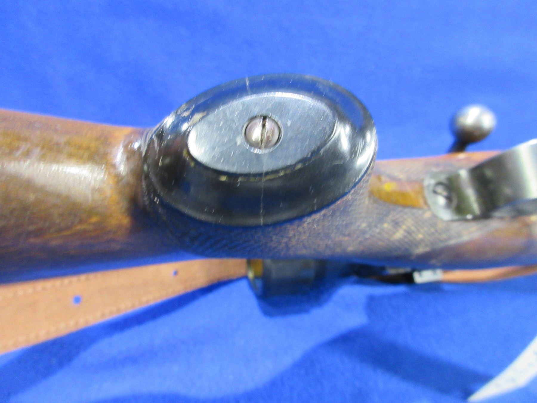Non-Restricted - Husqvarna in 8mm - This is a bolt action rifle with floorplate magazine, action appears to be in good to very good working order. Barrel is 23 1/2", rifling is good, bluing is good to very good, has both sights and unknown 3-9x40 scope - appears clear - duplex reticle, stock is good but finish is flaking, wrist cap cracked, length of pull is 14 1/4", butt plate good, comes with lens covers, swivels and leather sling. Ser # 48258