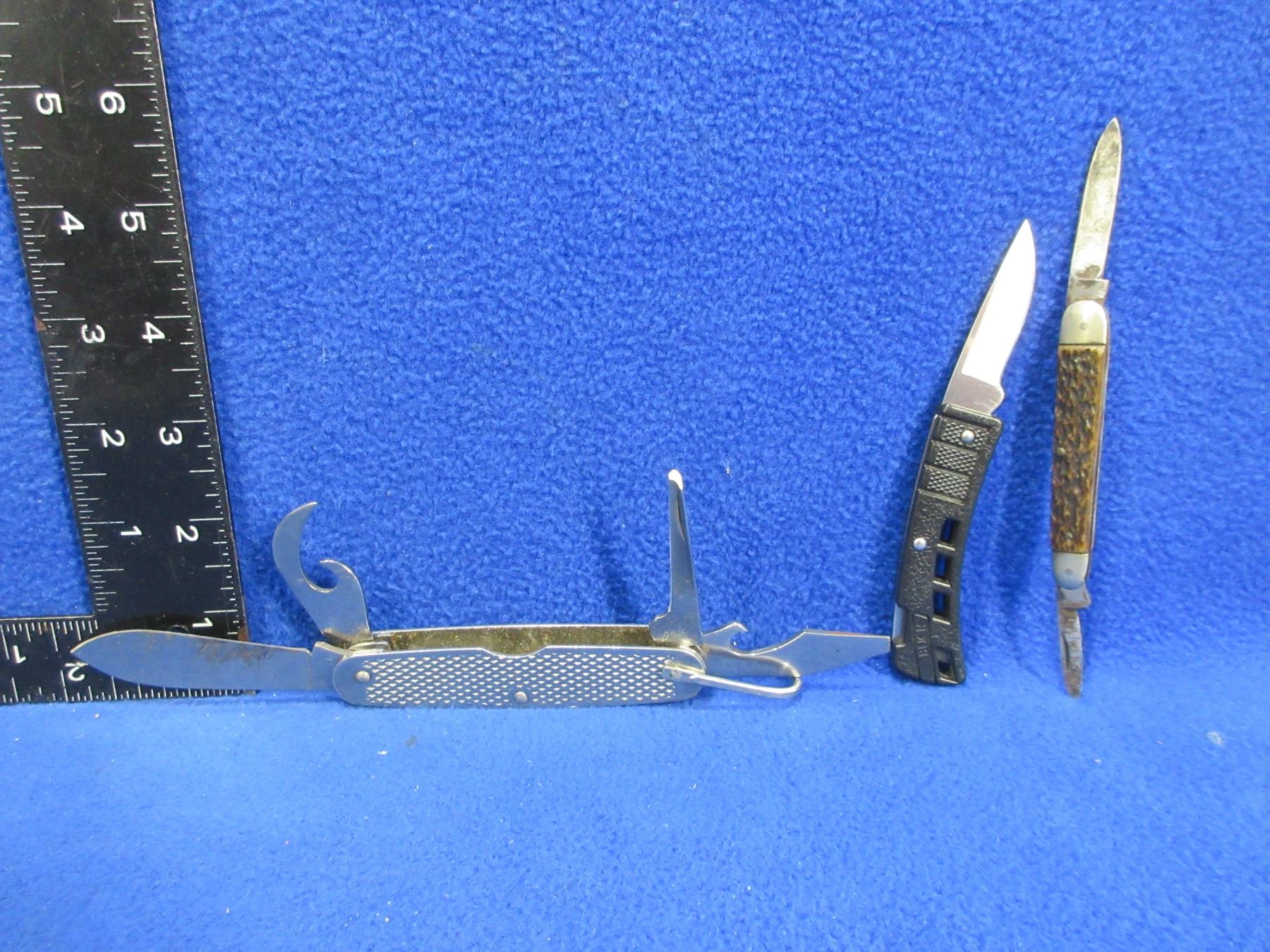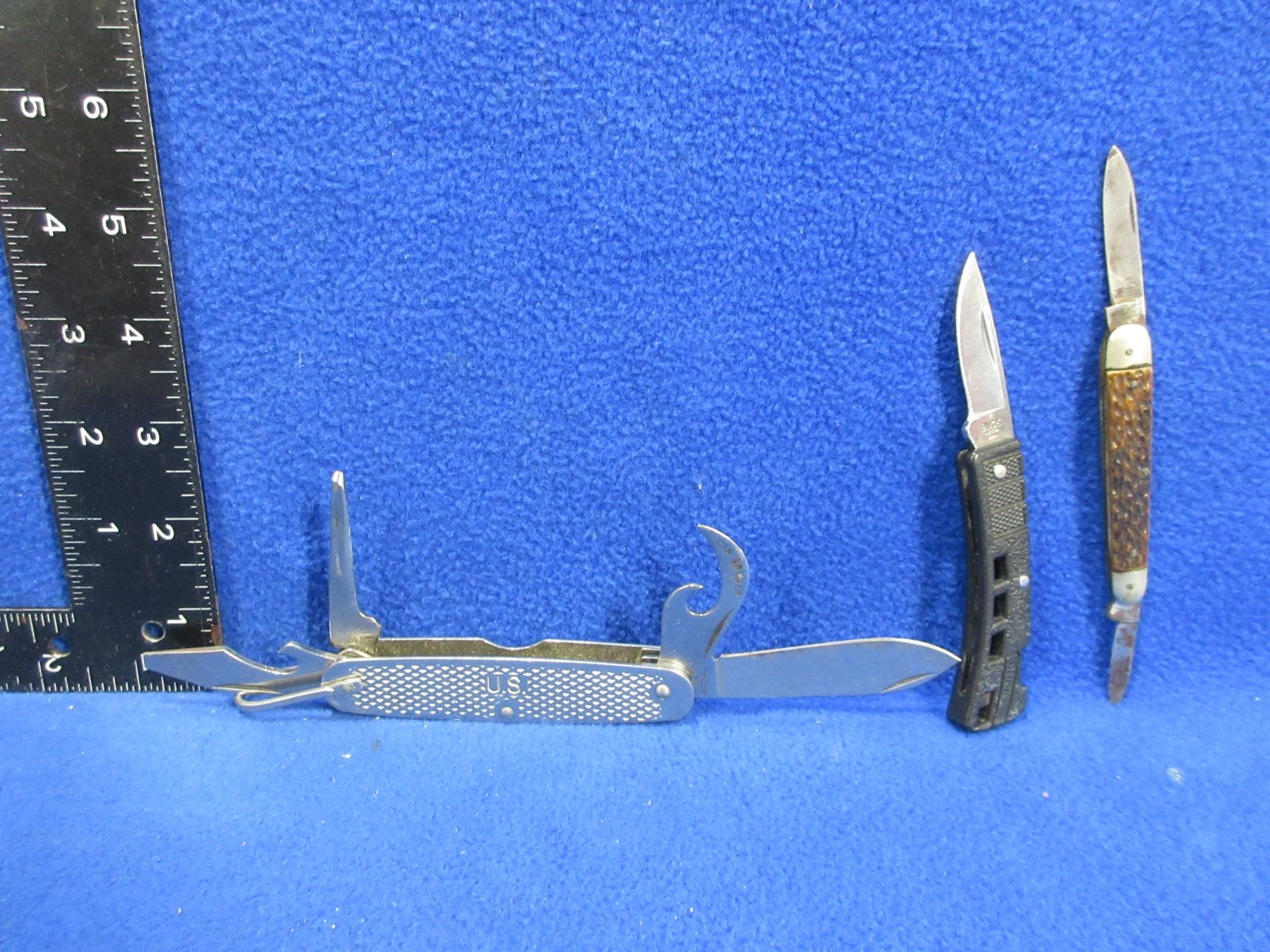 Lot 2378 3 Folding Blade Knives - Buck 425, US Camillus 1980, Unknown