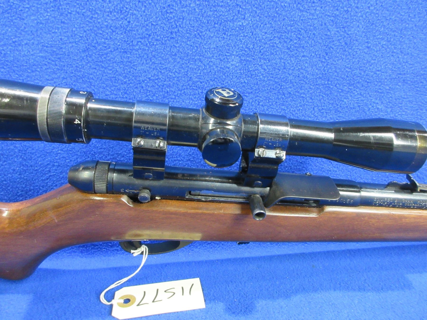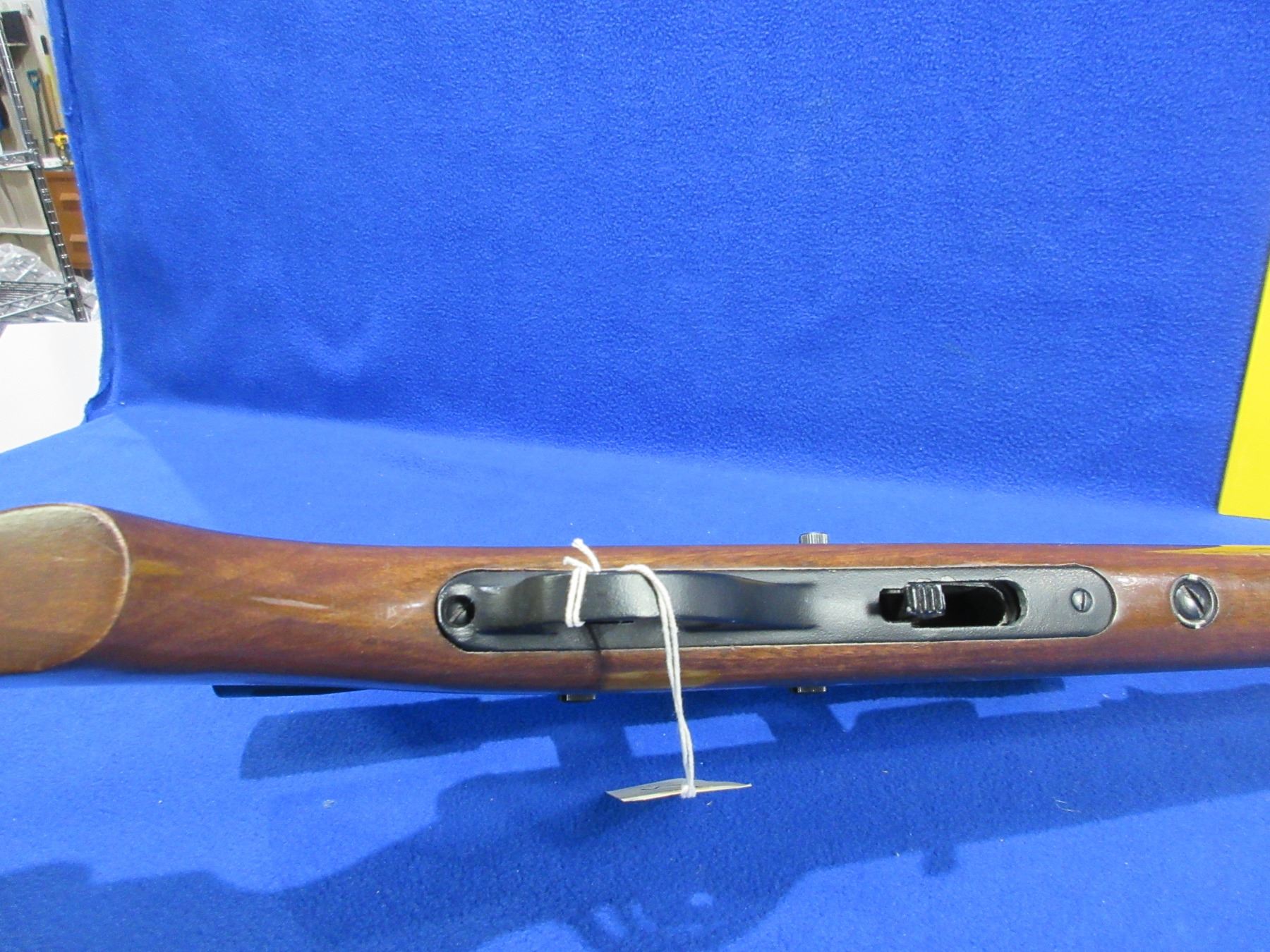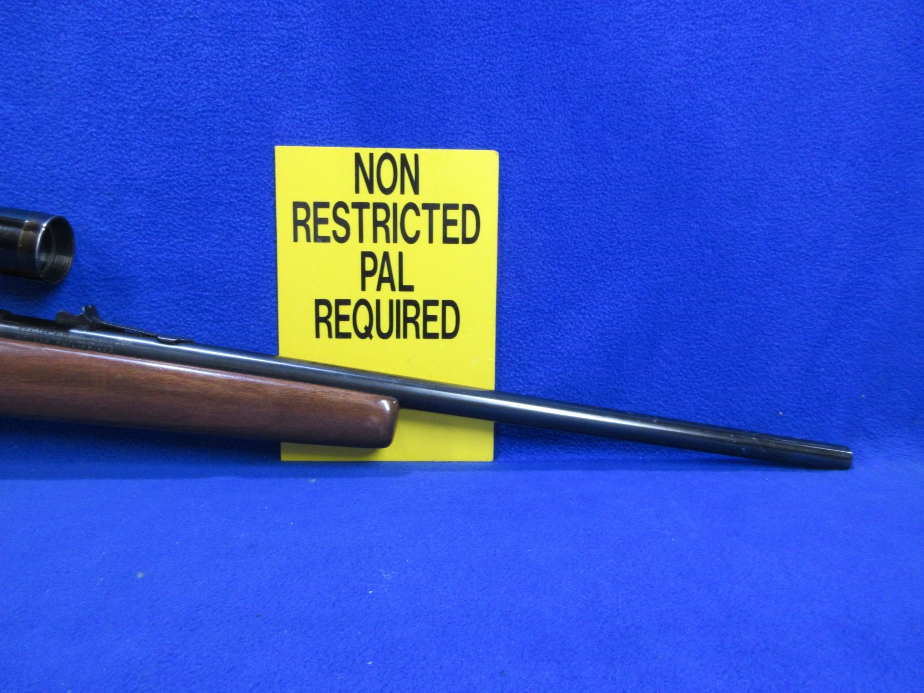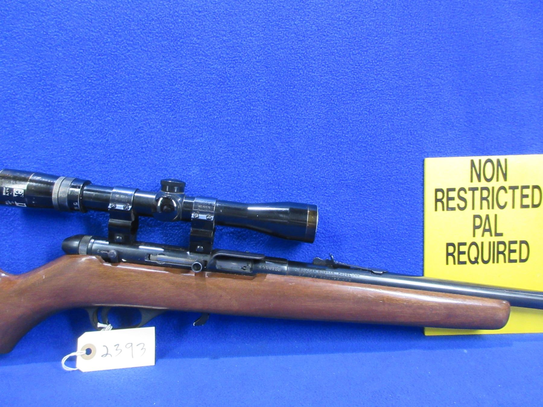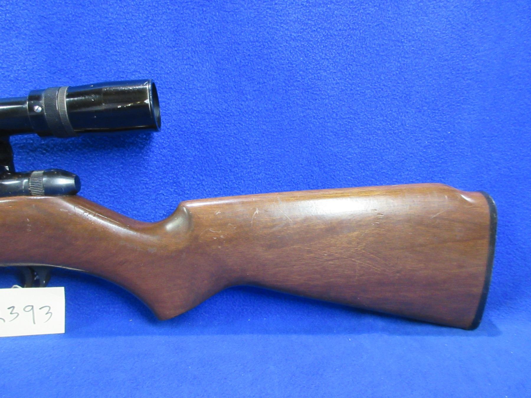 Non-Restricted - Squires Bingham Model 20P in 22 LR - This is a semi-auto rifle with removable magazine (magazine missing), action appears to be in good to very good working order. Barrel is 20 3/4", rifling is good to very good, bluing is good to very good, has rear sight, missing front sight and has Bushnell 3-9 scope - appears clear - duplex reticle, stock is good to very good with usage marks, length of pull is 14 ", butt plate good. Ser # A580156