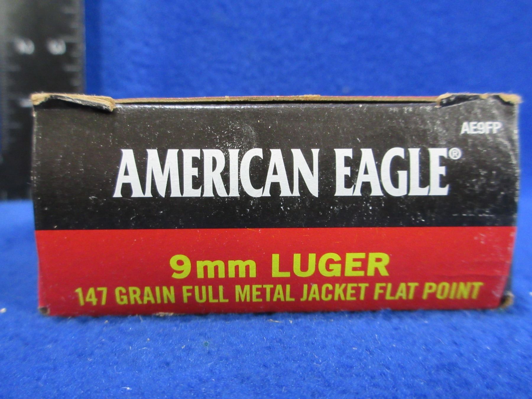 9MM Luger 147gr FMJ FP Federal (Pick Up or Ship by UPS Only) American Eagle Cartridges - Box of 35 + 14 Brass