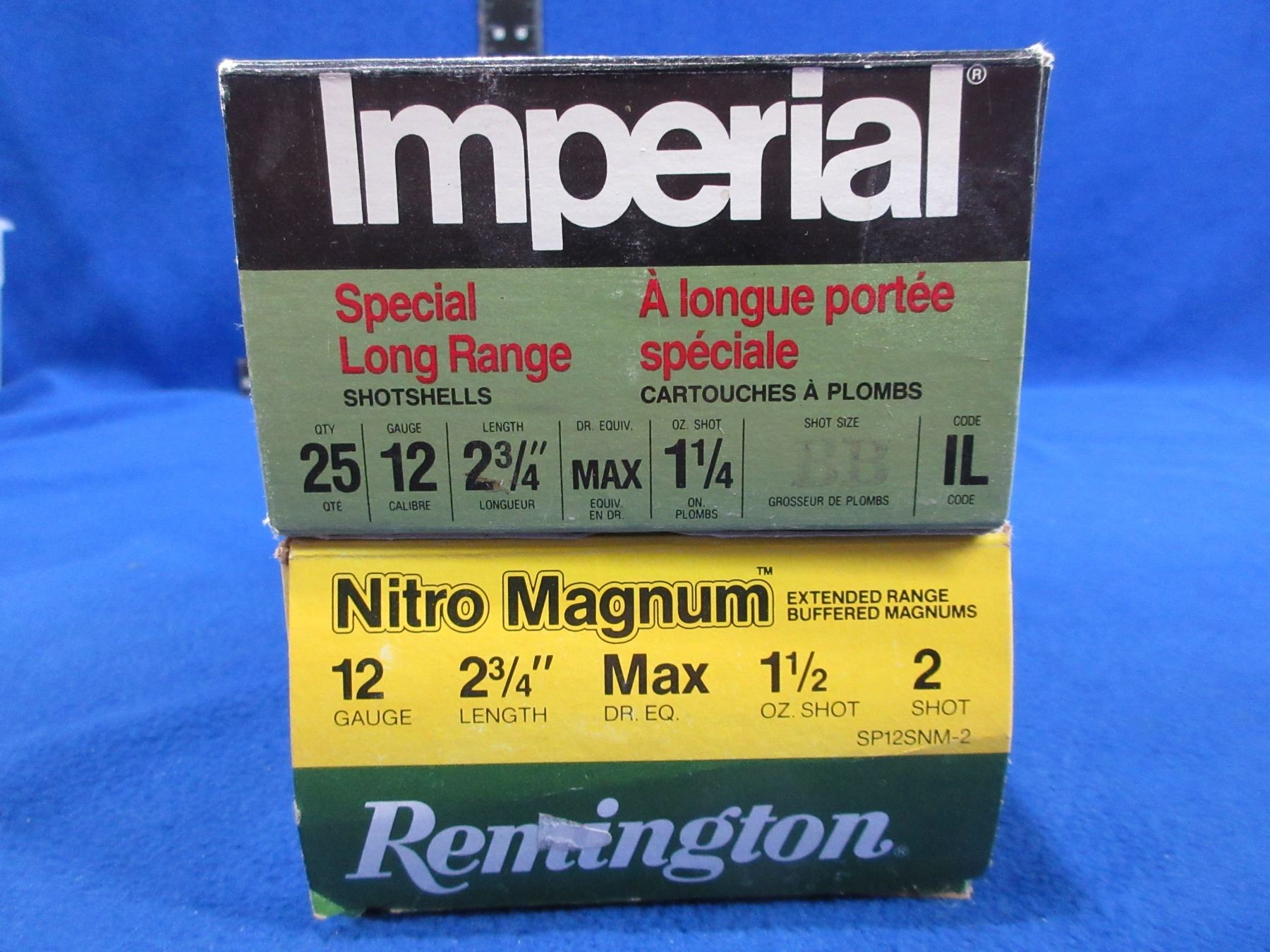 12 Ga. 2 3/4" Imperial & Remington (Pick Up or Ship by UPS Only) Shotshells - Box of 22 (Remington 2 Shot Nitro Mag), Box of 24 (Imperial BB Shot)