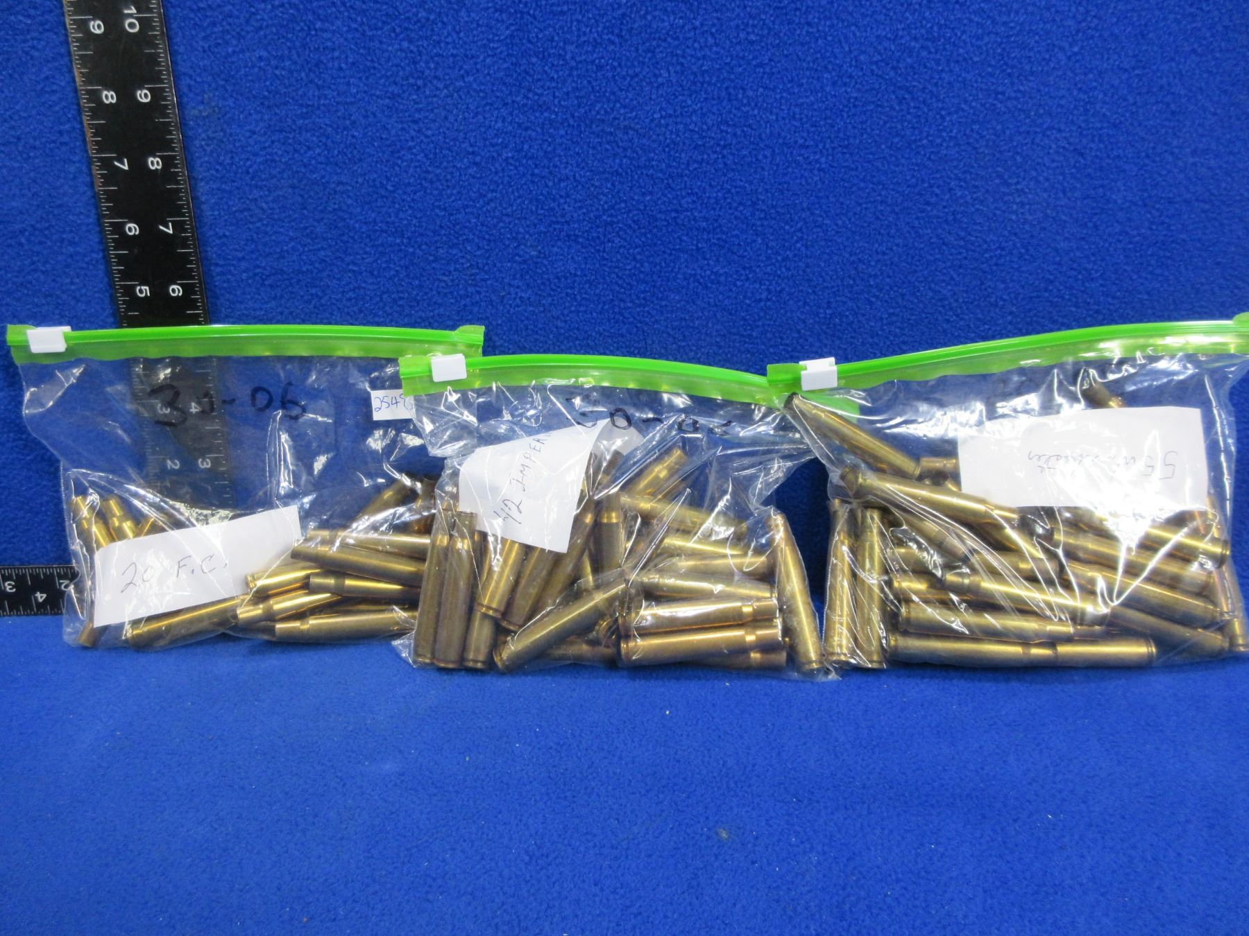 Brass Only - 30-06 Sprg Deprimed - 117 Total - Bag of 42 (Imperial Headstamp), Bag of 55 (Winchester Headstamp), Bag of 20 (FC Headstamp)