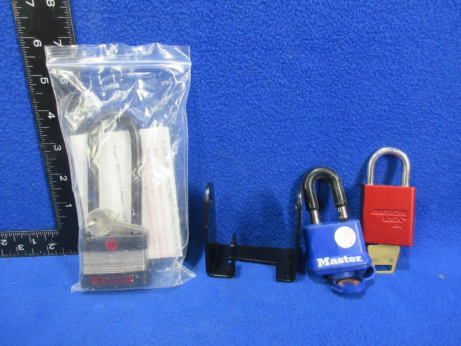 3 Padlocks - Ruger Trigger Lock (2 Keys), American (1 Key), Master (No Key)