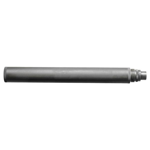 Cal. 9mm. S# S039. Model SPL 9mm silencer mfg. by DLO. Tube is marked "D.L.O. SHELTON CT. S.039". Silencer measures 13 1/4" in length. Metal components exhibit a matte blue finish overall. Silencer is wrapped in a Sten pattern wool and canvas handguard. CONDITION: exterior is very good, with some superficial marks from handling and storage. Interior is excellent, with nearly no / no evidence of prior use. Handguard is very good overall. NATIONAL FIREARMS ACT SUPPRESSOR REQUIRING BATF TRANSFER BEFORE TAKING POSSESSION. FULLY TRANSFERABLE. (03-1866/MLW). MODERN CLASS III. $400-600.