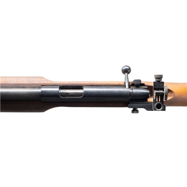 TARGET RIFLE. Cal. 22 LR. S# A1060687. Approx. 9,077 mfg. 1984-1986. Bbl. 27". Globe post front sight & Williams receiver sight. Hardwood target stock. MAGS: 1 - 5 rd. CONDITION: all aspects appear very good to near excellent showing light handling marks & 1 large streak of finish loss near muzzle. (25-3906/MD). MODERN. $300-500.
