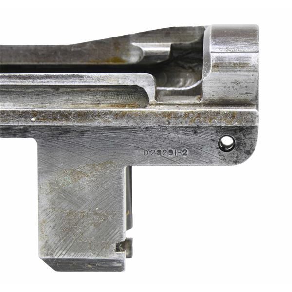 S# 150249. Receiver marked at heel "U.S. RIFLE / CAL. .30M1 / WINCHESTER / serial number". Marked on right forward end "D28291-2". Receiver manufactured in 1942. Clip latch assembly, rear sight spring cover, sight base & aperture are present. CONDITION: receiver moderate wear & traces of original finish turning gray. (25-2905/RW). MODERN. $300-500.