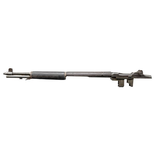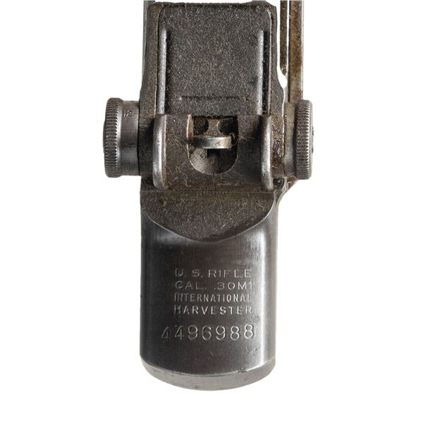 BARREL AND PARTS. Cal. 30-06. S# 4496988. Bbl. 24". Barrel markings on right side include "LMR 11 53" & import marks. Throat gauges 3.0. Muzzle gauges 1.0. Receiver carries standard markings at heel & is marked "IHC D6528291-A" at the right front end. T105E1 aperture rear sight. Blade front sight w/ protective ears. Group includes walnut front & rear handguards w/ furniture, gas cyl., stacking swivel, gas cyl. lock & gas cyl. lock screw. CONDITION: rifle appears to be dismantled after long hard service. Handguards have extensive wear, staining & handling marks w/ notable crack on left side of front handguard. Worn metal turning gray & patina w/ spots of oxidation & fine pitting. Bore has strong sharp lands w/ hint of frosting. (25-4407/RW). MODERN. $200-300.