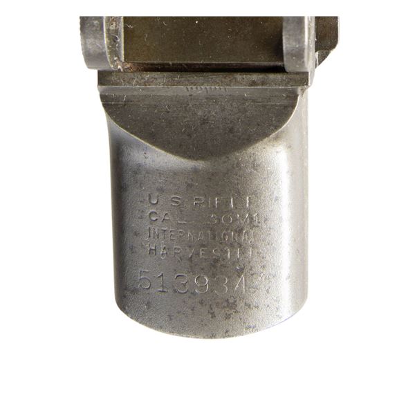 GARAND RECEIVER. S# 5139347. Receiver marked at heel "U.S. RIFLE / CAL. .30M1 / INTERNATIONAL / HARVESTER / serial number". Marked on right forward end "D6528291-X". No parts are present. CONDITION: receiver turning gray & patina is worn w/ scattered spots of light oxidation & spots of light pitting notably under wood line & on front of receiver ring. (25-2887/RW). MODERN. $300-500.