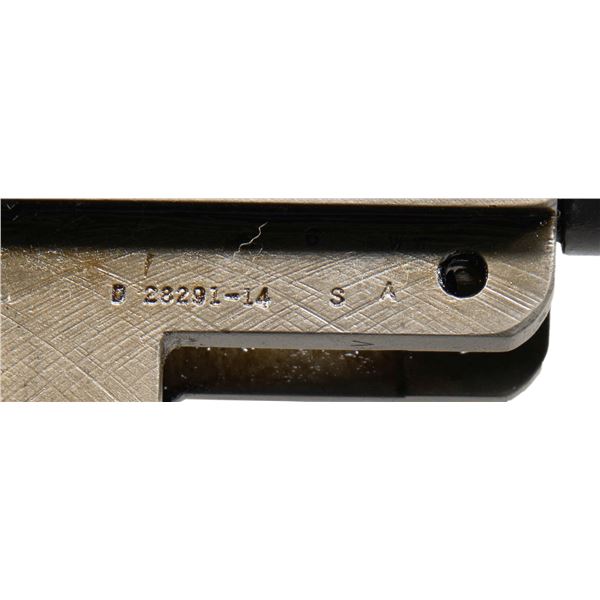 TRIGGER GROUP. Cal. 30-06. S# 428647. Bbl. 24". Barrel is marked on the right side "S-A-12-41". Muzzle & throat gauges 1.5. Receiver & barrel have no additional parts. Trigger housing w/ milled trigger guard has "SA" on all parts. CONDITION: trigger group, receiver & barrel retain a very large amount of their arsenal rework parkerized finish. Receiver & barrel do not carry any pitting. Good shiny bore w/ lightly worn lands. (25-2929/RW). MODERN. $200-400.