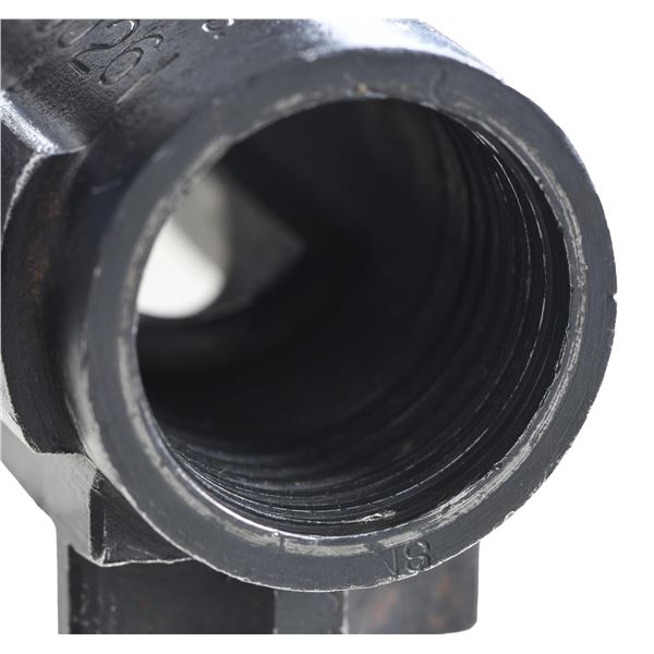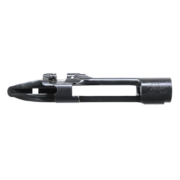 RECEIVERS. No.1: S# 1300261. Receiver produced in 1928. Constructed from nickel steel as evidenced by the "NS" marking at the forward edge of the receiver ring. Receiver contains no additional parts. Hatcher hole is not present. CONDITION: receiver has been cleaned over moderately worn arsenal rework finish. (25-3004/RW). No.2: S# 650698. Receiver produced in 1915. Hatcher hole is not present. Receiver contains no additional parts. CONDITION: receiver has a worn appearance w/ areas of moderate pitting notable on the raised boss at the right forward end of the receiver ring. (25-3007/RW). No.3: S# 1518060. Receiver manufactured between 1937 & 1939 w/ Hatcher hole. Receiver contains no additional parts. CONDITION: receiver retains nearly all of its professional blue refinish over scattered light pitting & light wear. (25-3010/RW). ALL MODERN. $300-500.