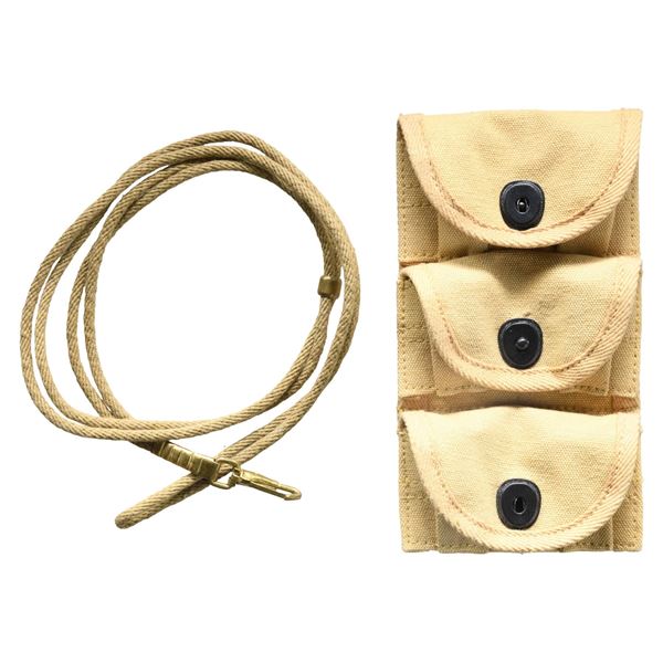 Cal. 45 ACP. S# 223706. Standard configurations with 5.5" bbl., 6 shot cyl. & smooth walnut grips. Khaki lanyard UNATTACHED ACCESSORIES: Rock Island ammo pouches & bag of moon clips. CONDITION: traces of blue finish with balance being gray/brown patina along with peppery oxidation throughout. Butt of frame has had markings mostly obliterated. Good grips with dings & marks. Fair worn bore with light pitting. (25-4557/MD). CURIO. $500-800.
