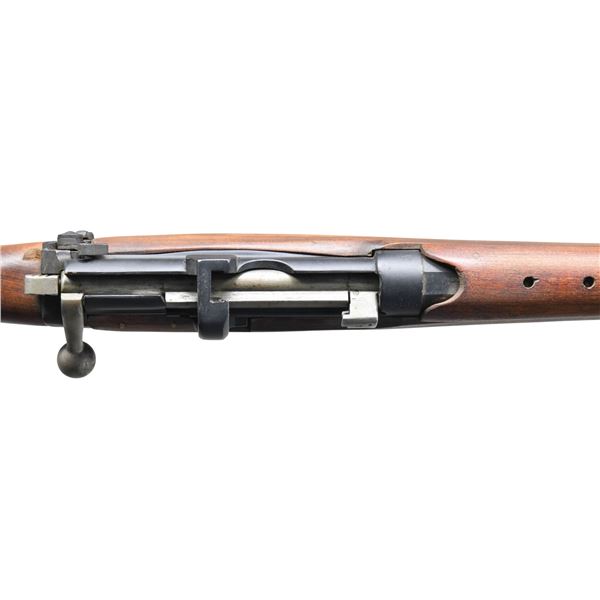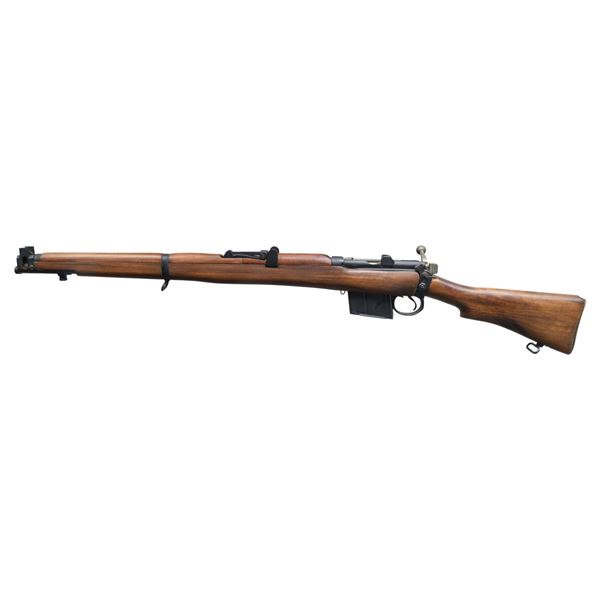Cal. 7.62x51. S# A29893. Bbl. 25 1/5". Standard SMLE style sights. Matching numbers on receiver, bbl. & rear sight with rear sight being arsenal force matched. Other parts are unnumbered or mismatched. Left side of receiver has Century import marking. Right side of socket has standard RFI 2A markings with 1965 date. Bolt has a gray color. Balance of metal has a matte gray refinish likely applied by the importer. Hardwood stock set with bottom mounted sling swivels. MAGS: 1-12 rd. numbered to a different rifle. CONDITION: stock set has importer refinish appearance with some handling marks & finish wear. Metal retains 98% matte gray refinish with some handling marks & light edge wear. Action functions properly when hand cycled. Bright near excellent bore. (25-3900/MJC). CURIO. $200-400.