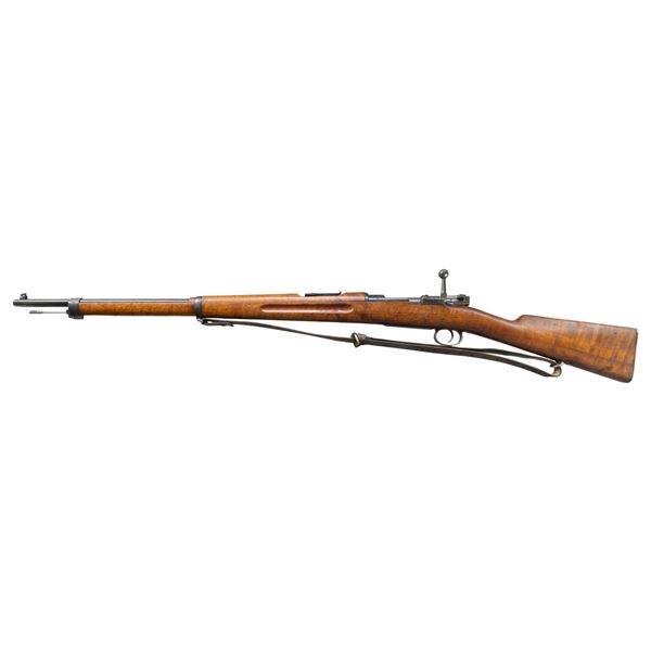 Cal. 6.5x55. S# 166425. Bbl. 29" with Century import marking. Standard Swedish M96 military sights. Rear sight & cleaning rod are mismatched but all other visible numbers are matching with electro pencil numbered safety. Receiver ring has Carl Gustafs markings & 1905 date. Arsenal blue finish. Hardwood stock set with bottom mounted sling swivels & leather sling. Underside of wrist has two Swede crown markings. Cleaning rod present. Stock disc has a triangle over "2" for bore condition. CONDITION: stock set shows some adhesive remnants on both sides of butt likely from a data plate, a couple gouges around the action, scattered dings & handling marks. Metal retains 70% arsenal rework blue with scattered fading, edge wear, thinning & light oxidation. Action functions properly when hand cycled. Very good bright bore. (25-3842/MJC). CURIO. $300-500.