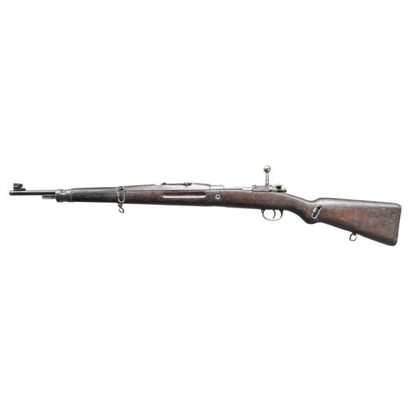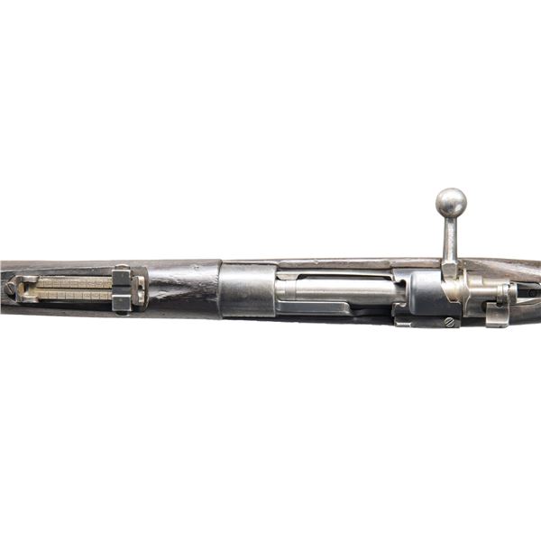 Cal. 8mm Mauser. S# SR24590. Bbl. 23 1/2" with Century import marking. Blade front sight with Czech protective ears. Tangent rear sight graduated to 2000m. Matching numbers on stock, trigger guard & receiver. Bolt number scrubbed. Receiver crest also scrubbed. Blued finish. Walnut stock with bottom & left side sling swivels. No cleaning rod present. CONDITION: stock has a dark appearance with a few light chips, scattered dings, handling marks & scratches. Metal retains 30% arsenal rework blue with overall fading to gray, scattered edge wear, dings & some light pitting. Action functions properly when hand cycled. Muzzle has been counterbored a few inches, bore otherwise shows scattered pitting & oxidation but evident rifling. (25-3873/MJC). CURIO. $300-500.