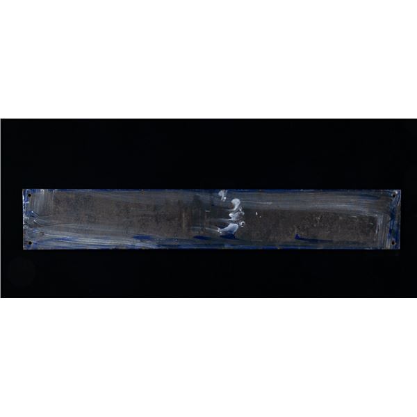 An exceptional example of a WWII German street sign form Nurenburg for the famous "Adolf - Hitler - Strasse". This blue and white enameled sign measures 34 1/2" x 5 3/4" and is slightly domed. This nearly mint condition sign come with a letter written in 1972 by Joseph Weiss who removed the sign himself from the "Main Street of Nurenberg within a few days of its capture in 1945". UNATTACHED ACCESSORIES: A 1972 letter of provenance about the sign. CONDITION: the sign itself is in near mint condition with only minor oxidation around the attachment holes. (02-24914/BF). NON-GUN. $400-700.