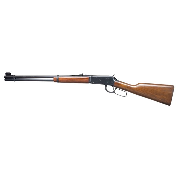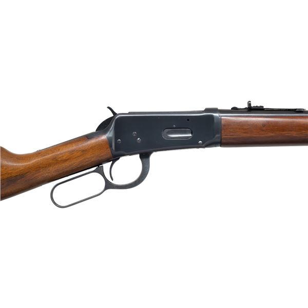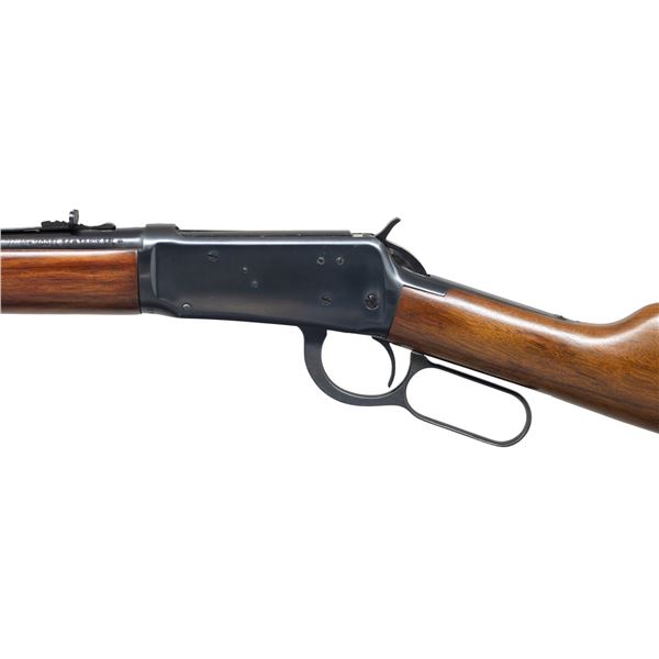 Cal. 32 Winchester Special. S# 2146161. Bbl. 19 7/8". Model 94 lever action rifle mfg. by Winchester in 1956. Left side of the bbl. exhibits standard factory markings denoting Winchester's mfg. information, as well as the model and cal. designations. Metal components exhibit a blue finish overall. Band fastened plain wood forearm and straight grip stock with flat checkered steel buttplate. Ramped, hooded, and aluminum beaded blade front sight with U-notch rear sight. CONDITION: metal components retain nearly all of their original factory blue finish, exhibiting a few scratches and superficial handling marks, as well as some small scattered spots of light surface and pitting oxidation overall. Right side of the receiver (on lower right edge) and either side of the front sight hood exhibit a patch of dark moderate oxidation. Brilliant mirror bore, exhibiting a couple of small spots of very light pitting, while retaining well defined rifling throughout. Proper manual mechanics. Wood furniture shows some small marks from handling and storage, but otherwise remains very good overall. (25-3323/MLW). CURIO. $400-600.