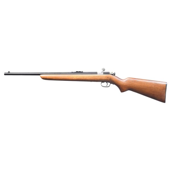 Cal. 22 S, L, LR. NSN. Bbl. 20" rnd., with integral single shot action. Chrome plated bolt, with manual cocking piece and wing type safety. Bead front sight, with elevator adj. sporting rear sight. Youth length walnut stock has original buttplate. Mfg. from 1934-1963. CONDITION: 99% original blue. Bbl. has an irregular turning mark 3 1/2" from the muzzle. Stock has good original finish, showing scattered scratches and marks. Bright near excellent bore. (25-3029/DS). CURIO. $200-300.