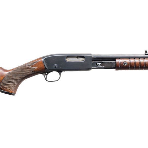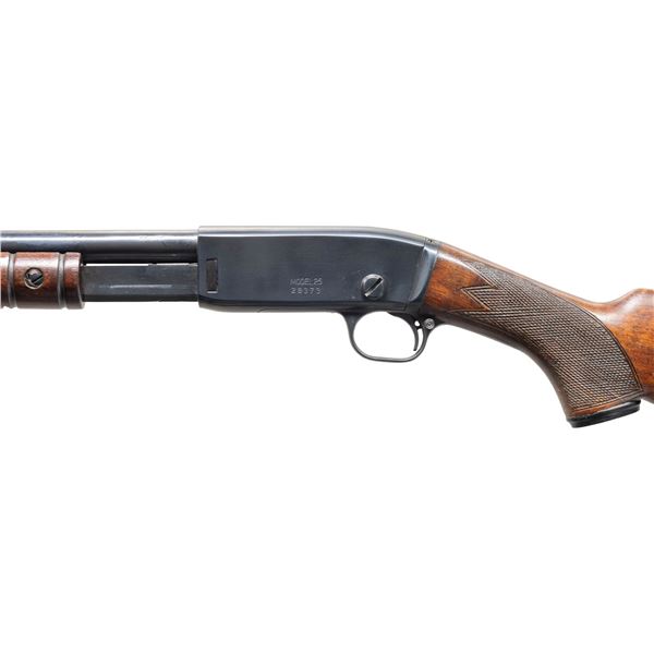 Cal. 32 WCF (32-20). S# 28373. Bbl. 24"; 4 repaired holes on left side behind rear sight. Blade front sight & folding rear sight. Tubular mag. has loading gate. Walnut stock set w/ grooved forearm. Checkered pistol grip buttstock w/ crescent buttplate; added grip cap. CONDITION: very good reblued metal finish over prior pitting. Good worn wood finish with marks. Good rifling with some light pitting. (25-4077/MD). CURIO. $300-400.