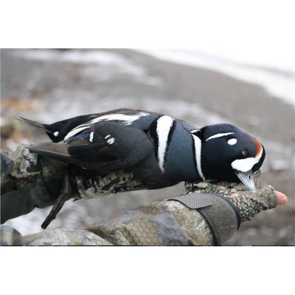 SPECIAL NOTES: The trophy Black-tailed deer during prime rut is semi-guided and the trophy sea duck hunt usually has non-stop action on the Kodiak Island wintering grounds. Sea duck hunting on Kodiak Island is primarily done over decoys from shore or floating blinds, and jump-shooting birds. Our sea duck guests are typically treated to opportunities for Harlequin, Old Squaw (Long-tailed duck), Mergansers (Common and Red Breasted), Scoters (Common, Surf and White-Winged), King and Common Eider. Alaska offers 22 duck species and four goose species.