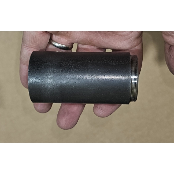 Threads behind the muzzle brake. Overall length is about 3''. ID is 1-3/8''. Sticky threads between the shroud and the adapter.