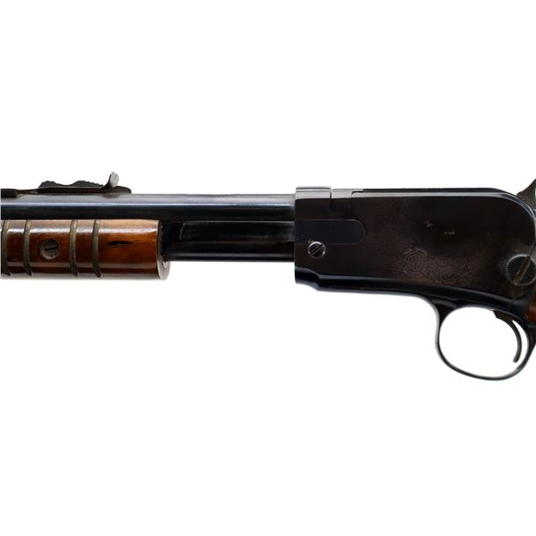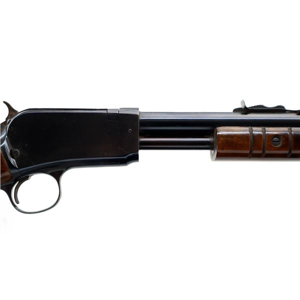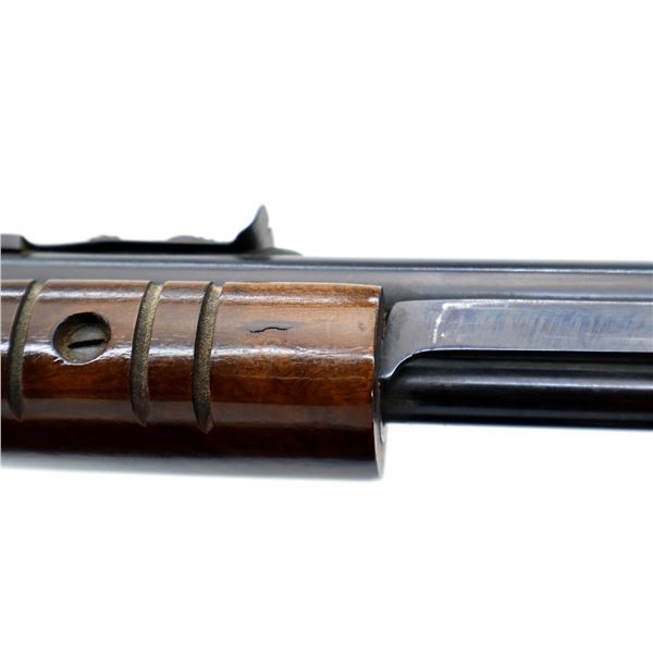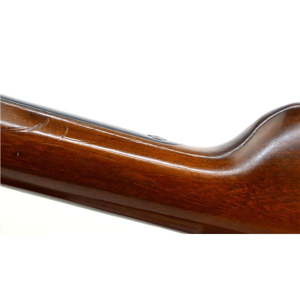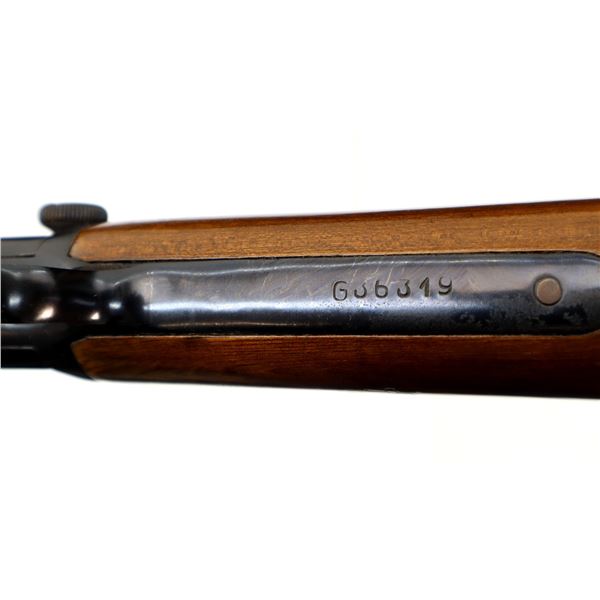 Main Description: Blade front sight, adjustable u notched rear sight, blued finish, grooved spur hammer. Two piece wood stocks, grooved forearm, straight grip, textured black polymer butt plate