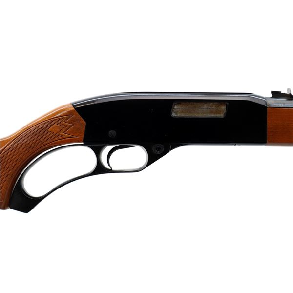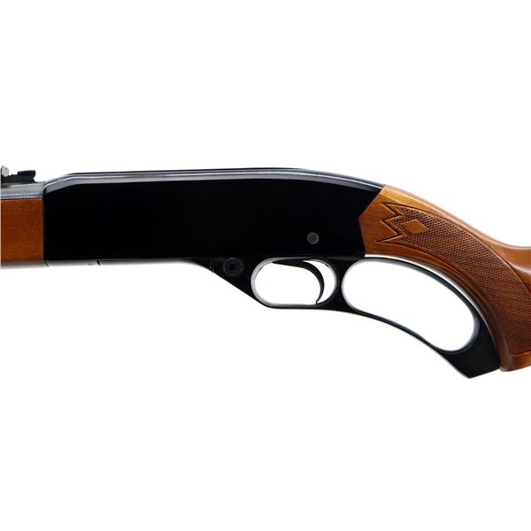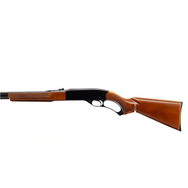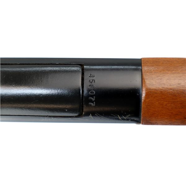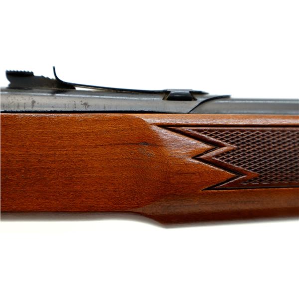 Main Description: Blade front sight, adjustable u notched rear sight, blued barrel, grooved black alloy receiver. Two piece wood stocks, checkered forearm and pistol grip, grooved black polymer butt plate